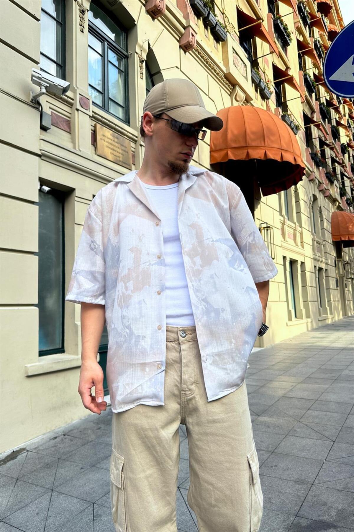 Desenli İnce Kumaş Bej Oversize Gömlek G130 Desenli İnce Kumaş Bej Oversize Gömlek G130 TX11E311403823 5XL