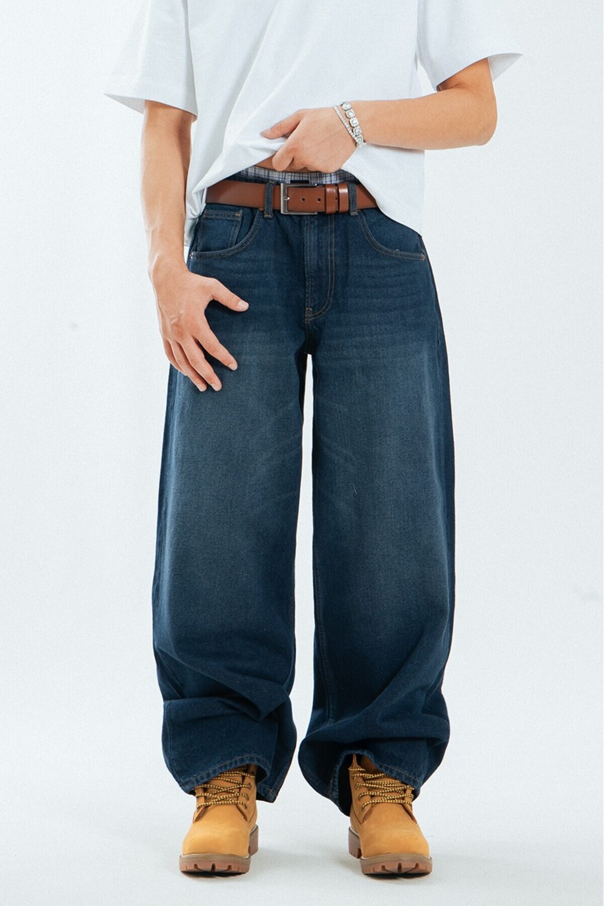 Koyu Mavi Yıkama Efektli Baggy Jean Pantolon Koyu Mavi Yıkama Efektli Baggy Jean Pantolon TX11E311405782 36