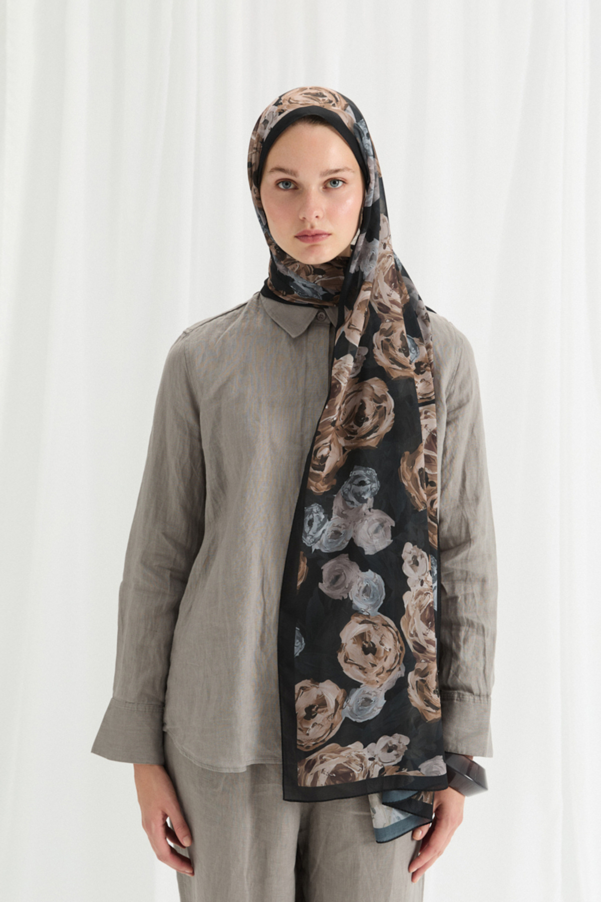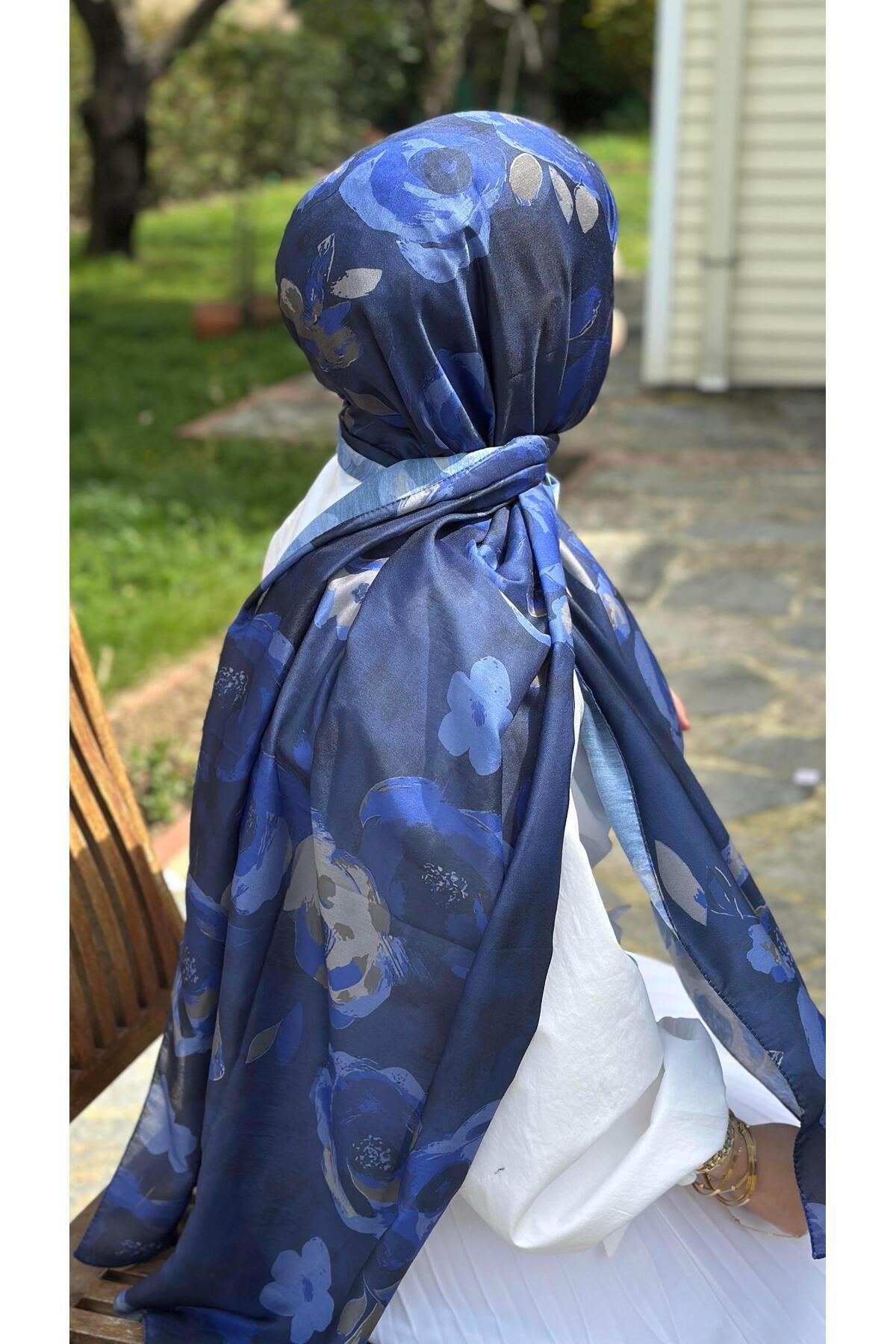 Gül Desen Lacivert Soft Pamuk Şal Gül Desen Lacivert Soft Pamuk Şal MAY0028 تک سایز