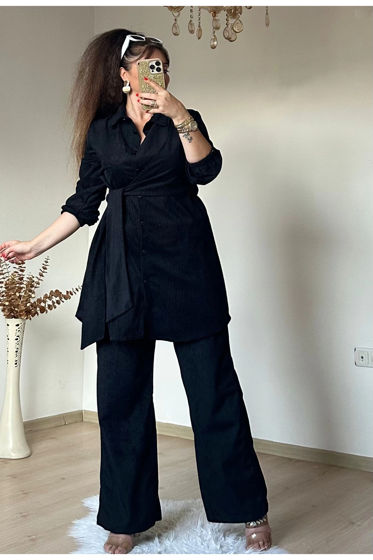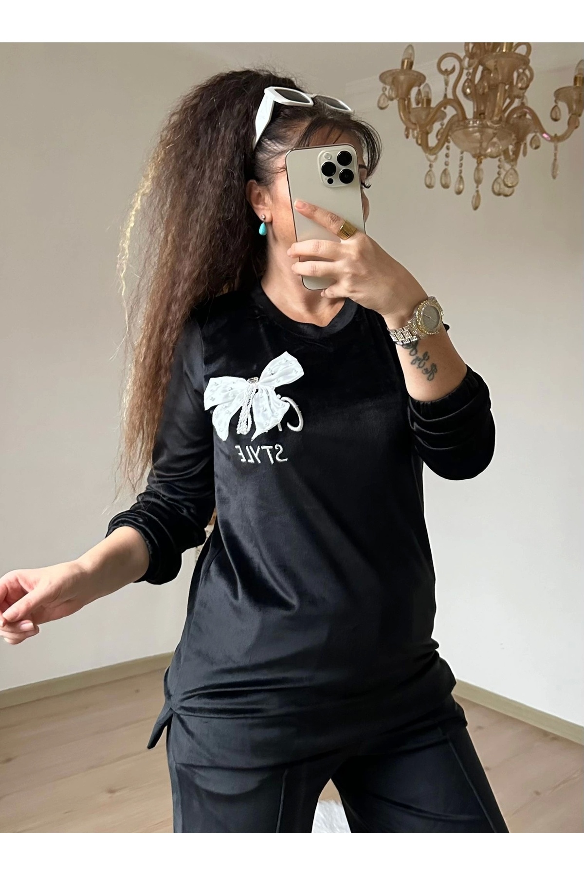 Kurdela Detaylı Siyah Kadıfe Takım Kurdela Detaylı Siyah Kadıfe Takım P599S2035 42