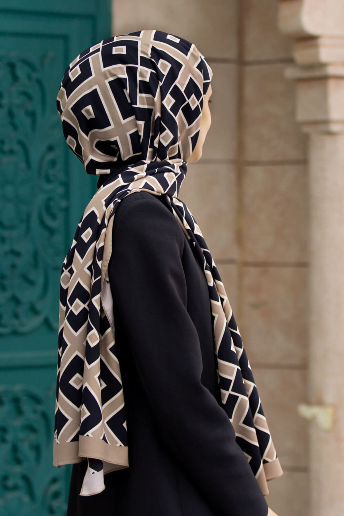 LÜKS MEDİNE İPEĞİ GEOMETRİK DESENLİ PUDRA - SİYAH RENKLİ 75X195 KIRIŞMAZ ŞAL MOSS KREP DİKİŞ TİPİ İT LÜKS MEDİNE İPEĞİ GEOMETRİK DESENLİ PUDRA - SİYAH RENKLİ 75X195 KIRIŞMAZ ŞAL MOSS KREP DİKİŞ TİPİ İT DGN50577-5 75 x 195