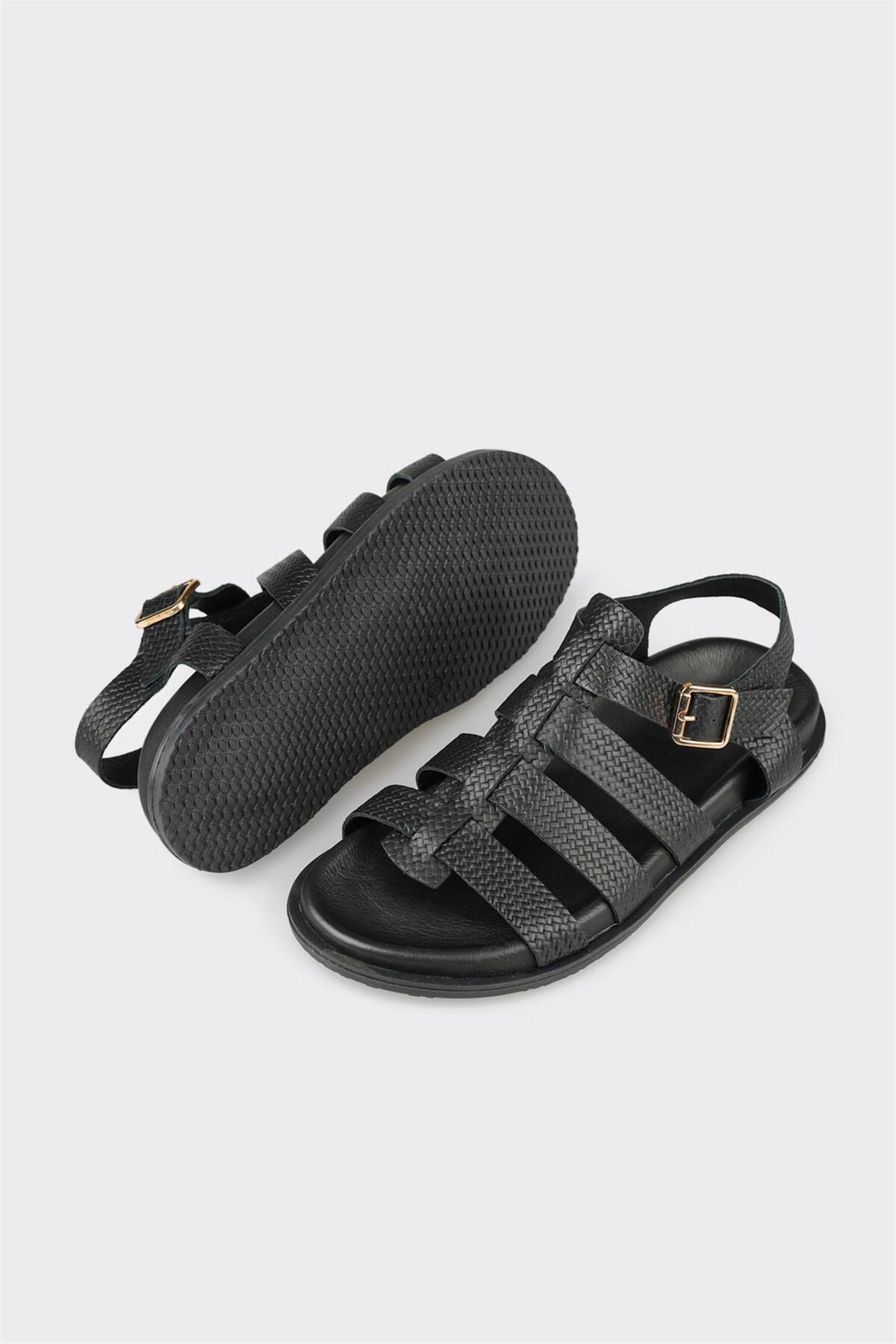 Siyah Deri Kadın Düz Sandalet Siyah Deri Kadın Düz Sandalet ZEGOM 40