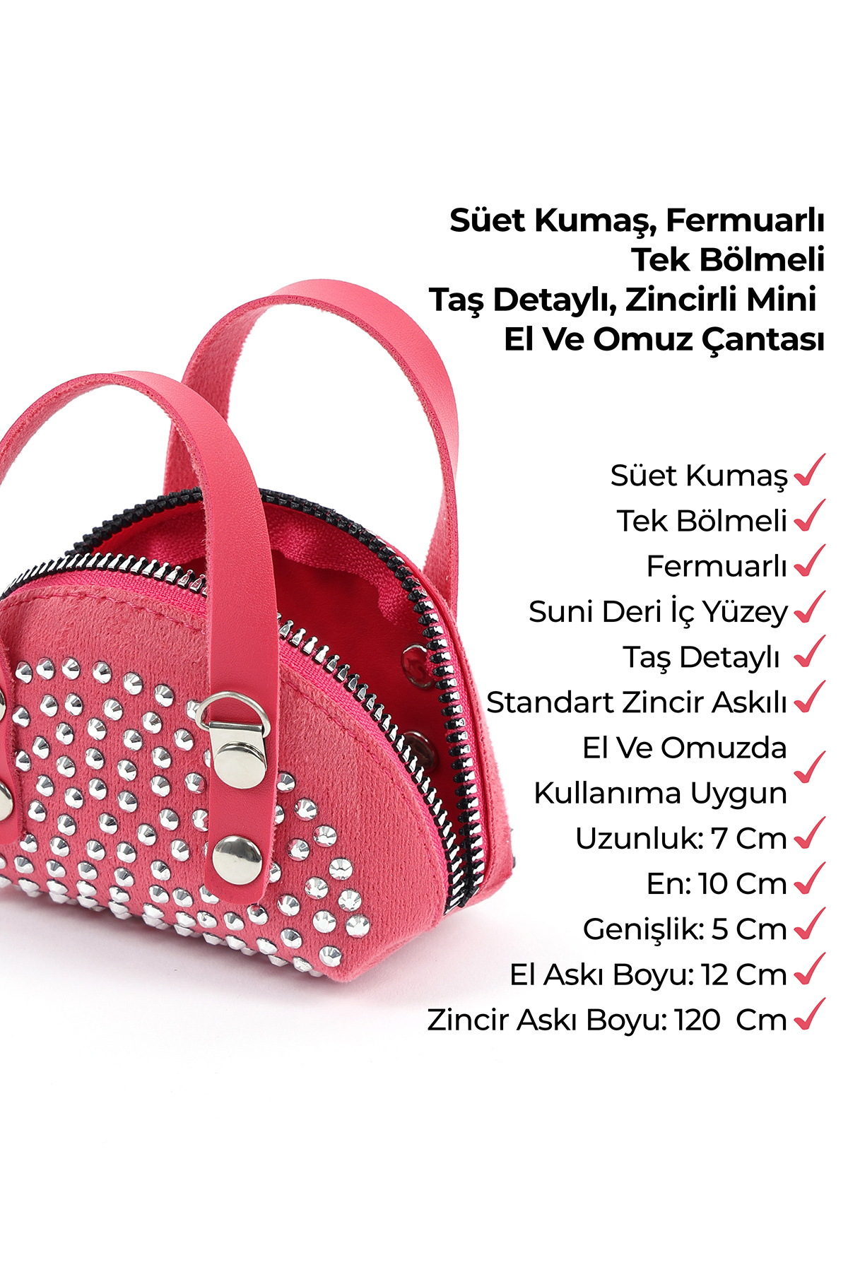 Fuşya Shk220 Süet Kumaş, Tek Bölmeli, Zincir Askılı,Fermuarlı, Taşlı, Mini El Ve Omuz Çantası Fuşya Shk220 Süet Kumaş, Tek Bölmeli, Zincir Askılı,Fermuarlı, Taşlı, Mini El Ve Omuz Çantası S235-00028 تک سایز