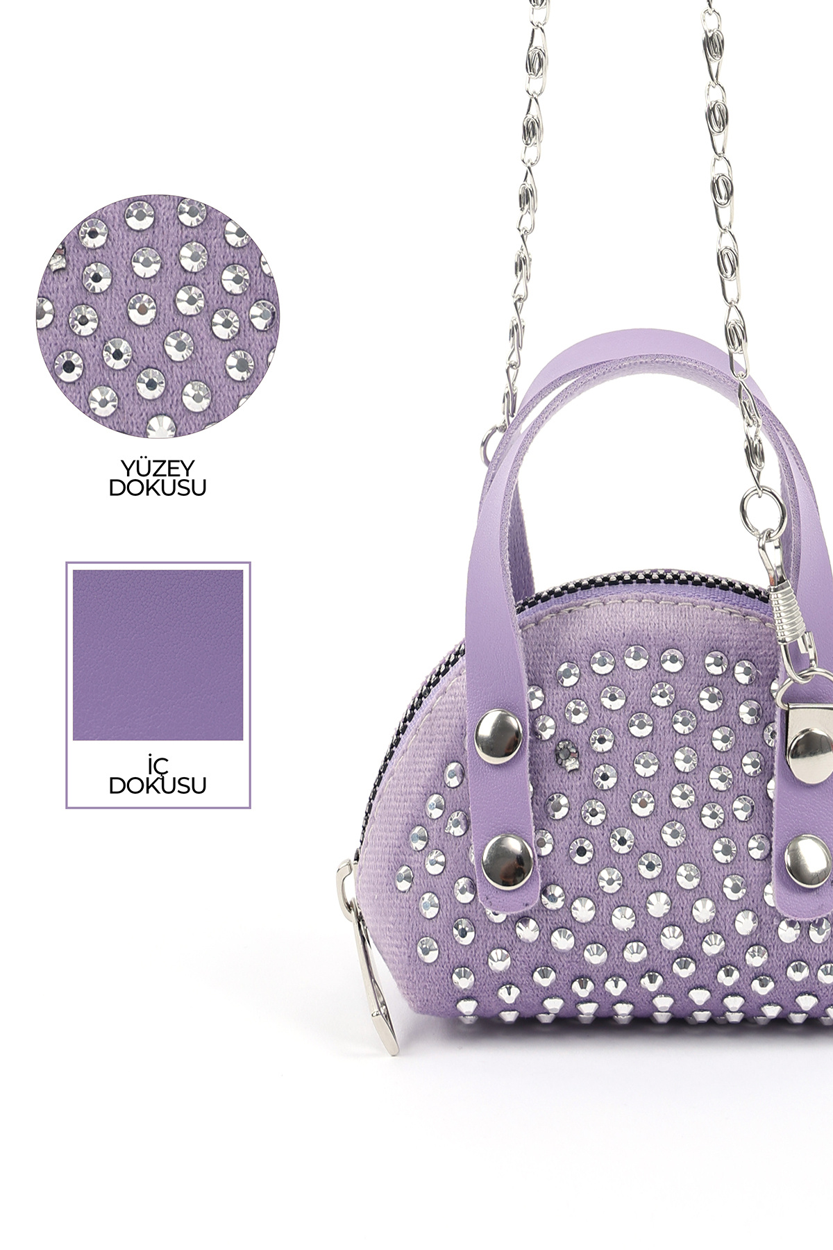 Lila Shk220 Süet Kumaş, Tek Bölmeli, Zincir Askılı,Fermuarlı, Taşlı, Mini El Ve Omuz Çantası Lila Shk220 Süet Kumaş, Tek Bölmeli, Zincir Askılı,Fermuarlı, Taşlı, Mini El Ve Omuz Çantası S235-00028 تک سایز