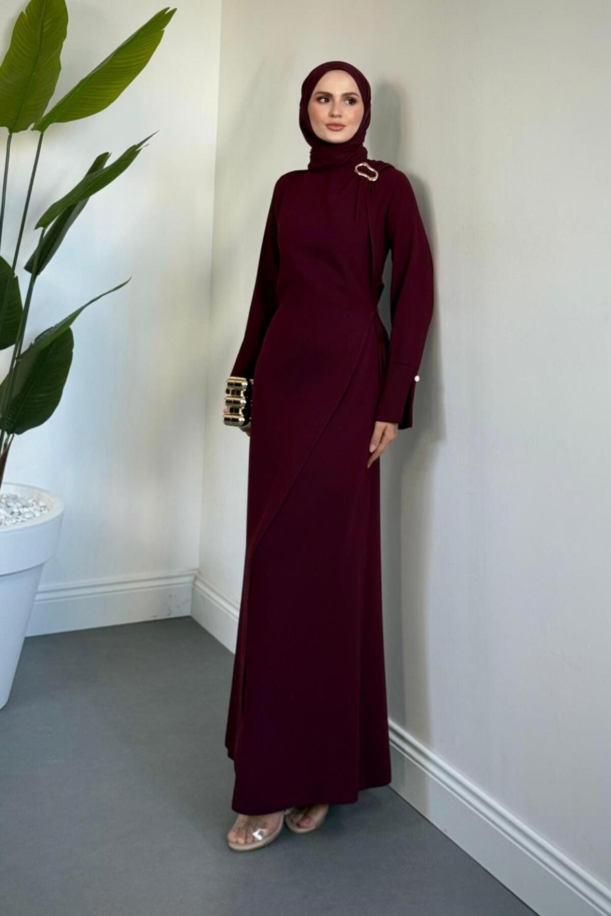 Kolu Tüylü Pile Detay Elbise Bordo Kolu Tüylü Pile Detay Elbise Bordo 4249520 46