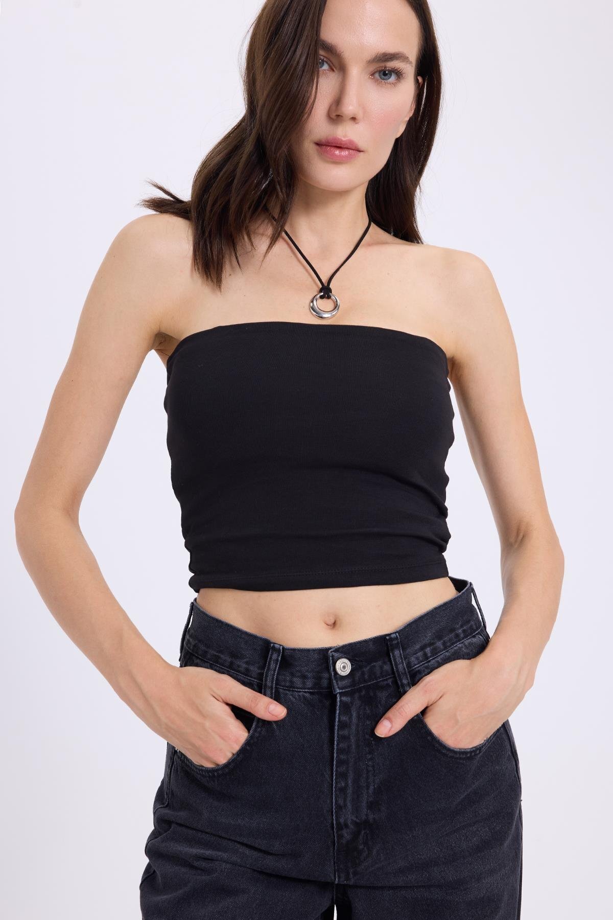 Öz Pamuk Fitilli Pamuklu Kumaş Örme Kare Yaka Crop T-shirt BLUZ Öz Pamuk Fitilli Pamuklu Kumaş Örme Kare Yaka Crop T-shirt BLUZ ÖZ PAMUK KARESi-005 L