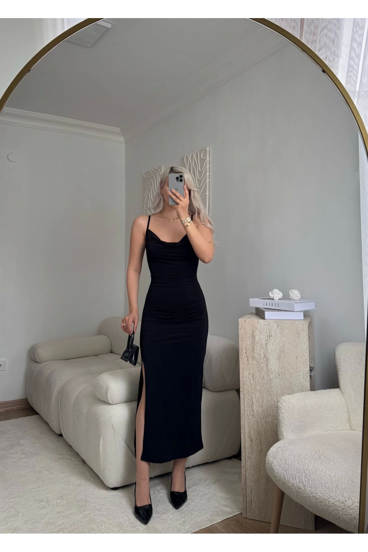 Waterfall Yaka Yırtmaçlı Elbise - SİYAH Waterfall Yaka Yırtmaçlı Elbise - SİYAH P2919S6138 L