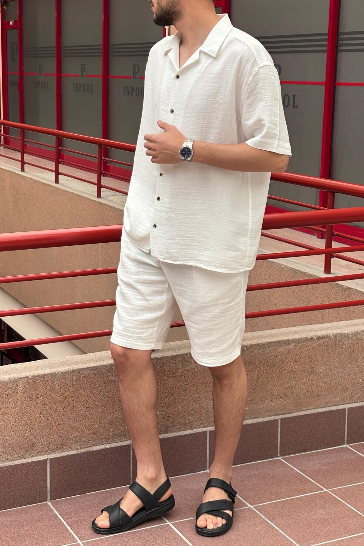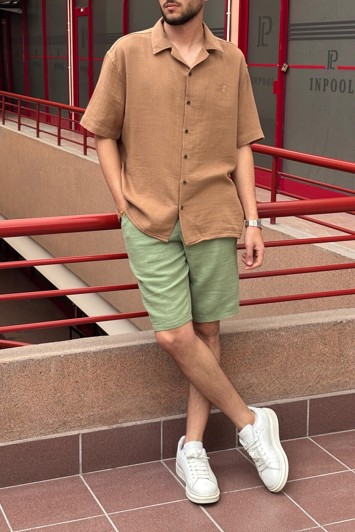 Erkek, apaş yaka, Oversize, %100 pamuk, Müslin dokuma, Kısa kollu gömlek G14 Erkek, apaş yaka, Oversize, %100 pamuk, Müslin dokuma, Kısa kollu gömlek G14 25INPG14 2XL