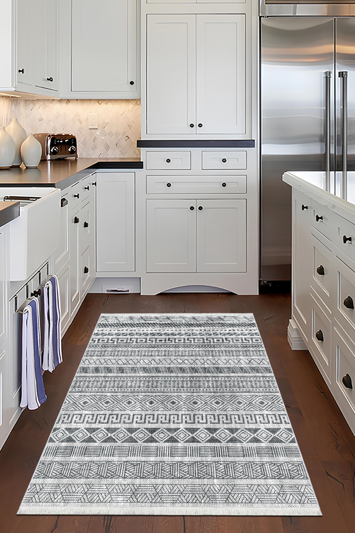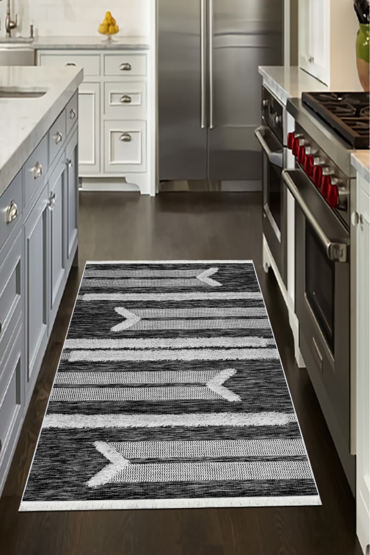 Siyah Gri Mutfak Halısı Makinede Yıkanabilir Halı Kaymaz Taban Halı Siyah Gri Mutfak Halısı Makinede Yıkanabilir Halı Kaymaz Taban Halı 1634 Mutfak Halısı 100 x 430