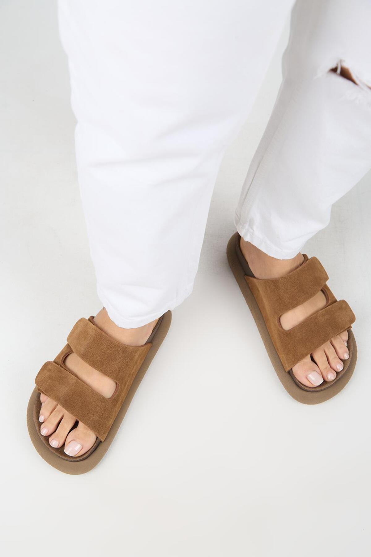 Lillo Kadın Hakiki Deri Çift Cırtlı Taba Terlik Lillo Kadın Hakiki Deri Çift Cırtlı Taba Terlik MNJ.202 41