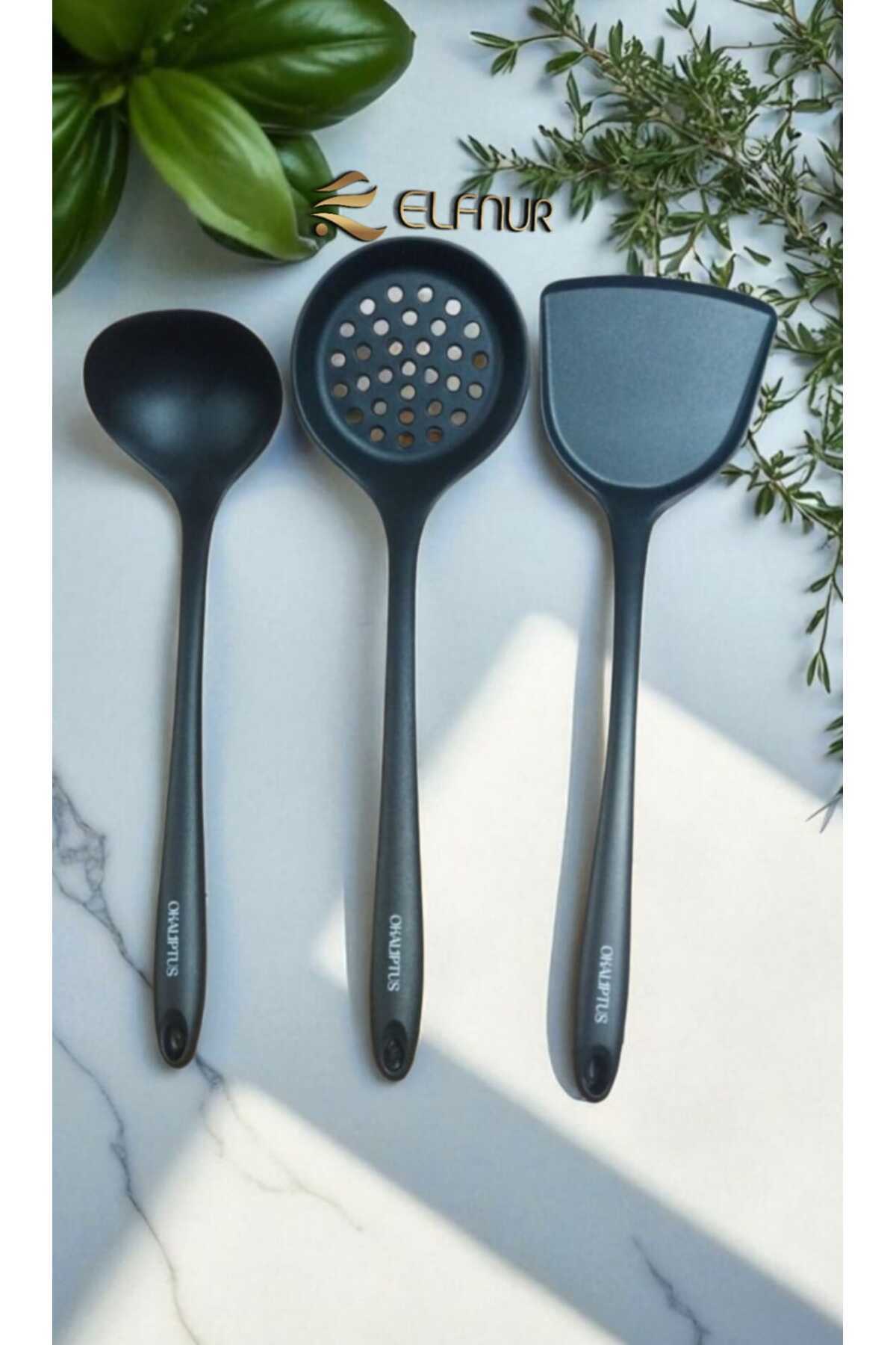 Sert Uçlu Isıya Dayanıklı Silikon Kevgir Sıpatula Kepçe Kaşık Seti 4Prç Siyah Sert Uçlu Isıya Dayanıklı Silikon Kevgir Sıpatula Kepçe Kaşık Seti 4Prç Siyah 123654879 تک سایز