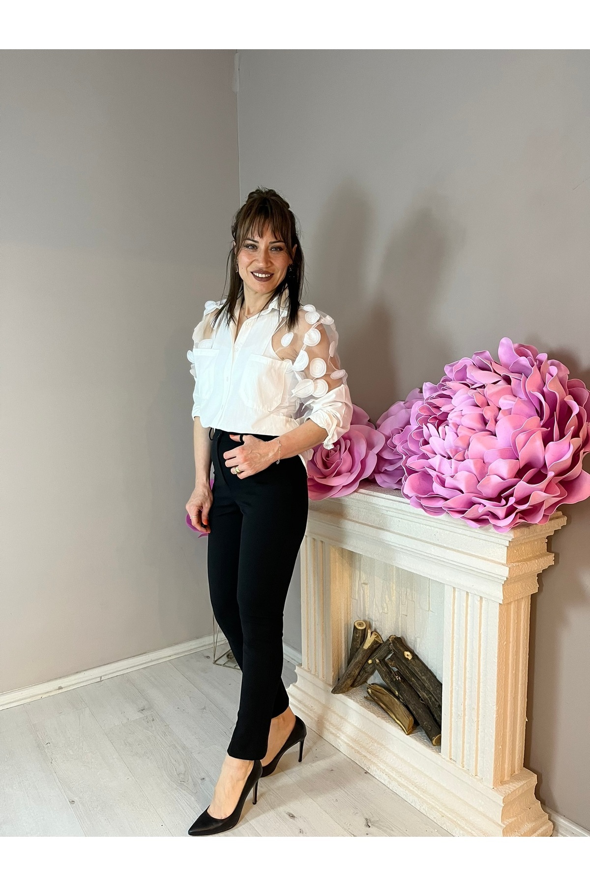 Tül detaylı ,Beyaz Gömlek Tül detaylı ,Beyaz Gömlek SSTLGMLK L