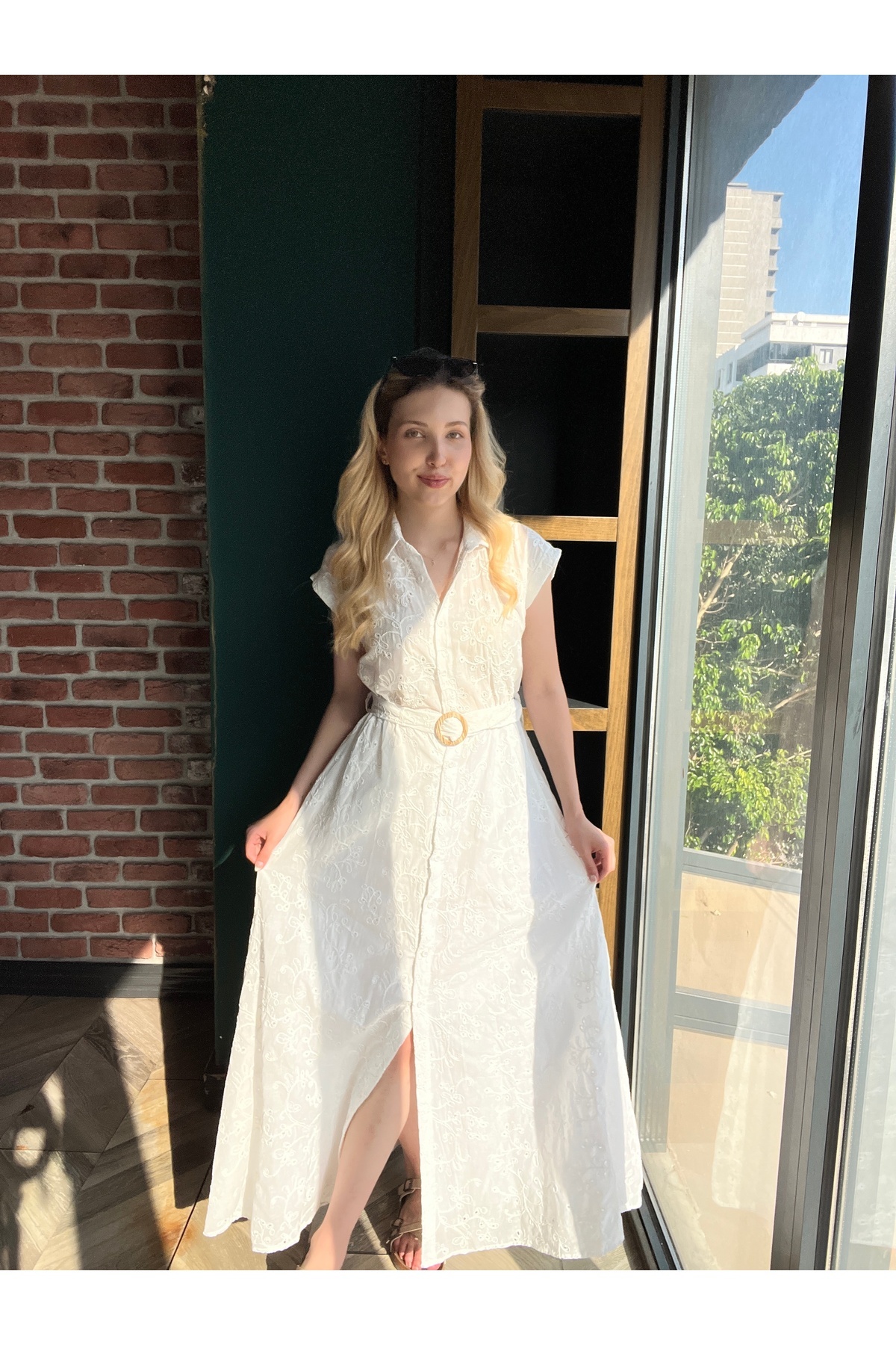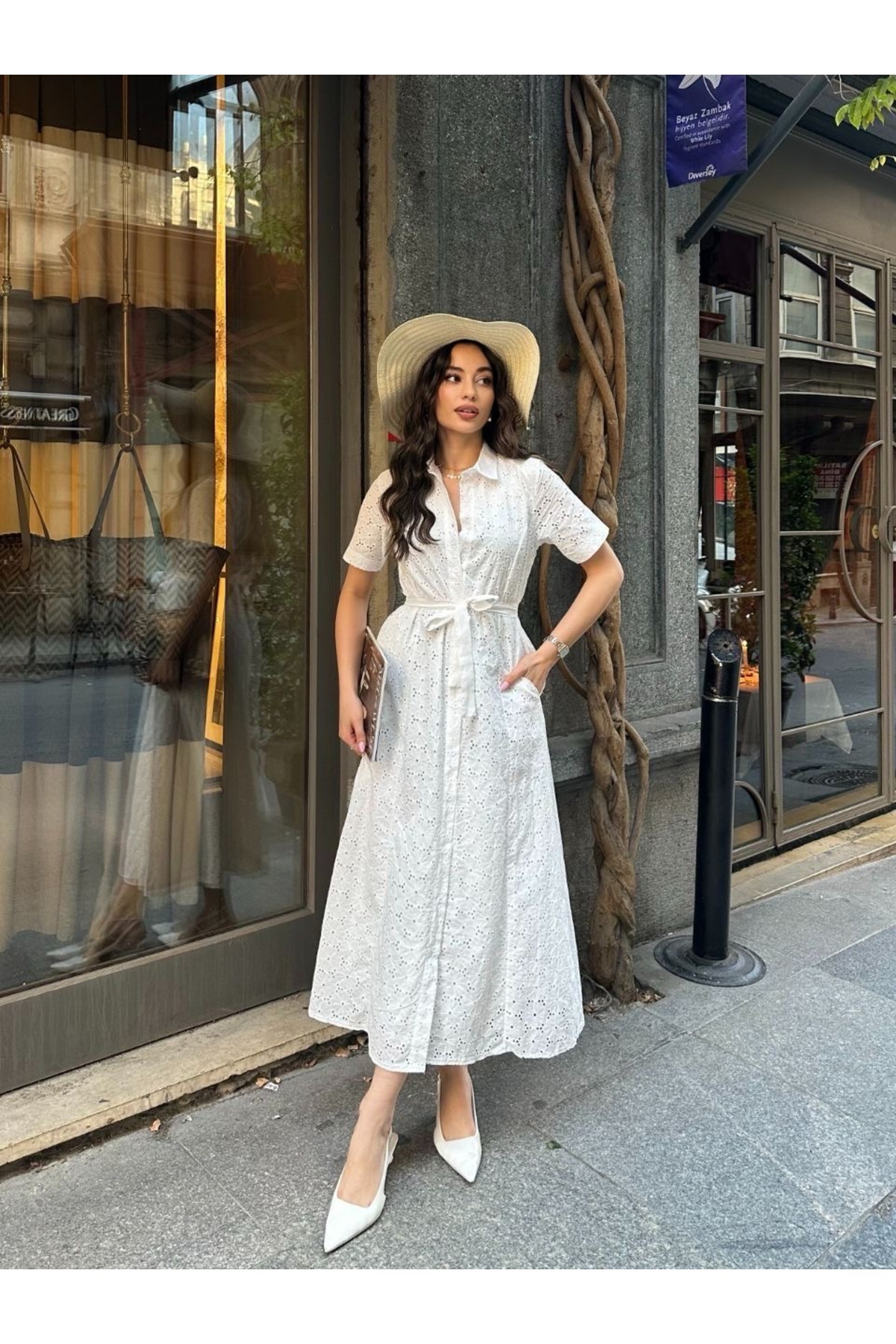 Beli Bağcıklı Fistolu Uzun Elbise Beli Bağcıklı Fistolu Uzun Elbise CE32435702 L