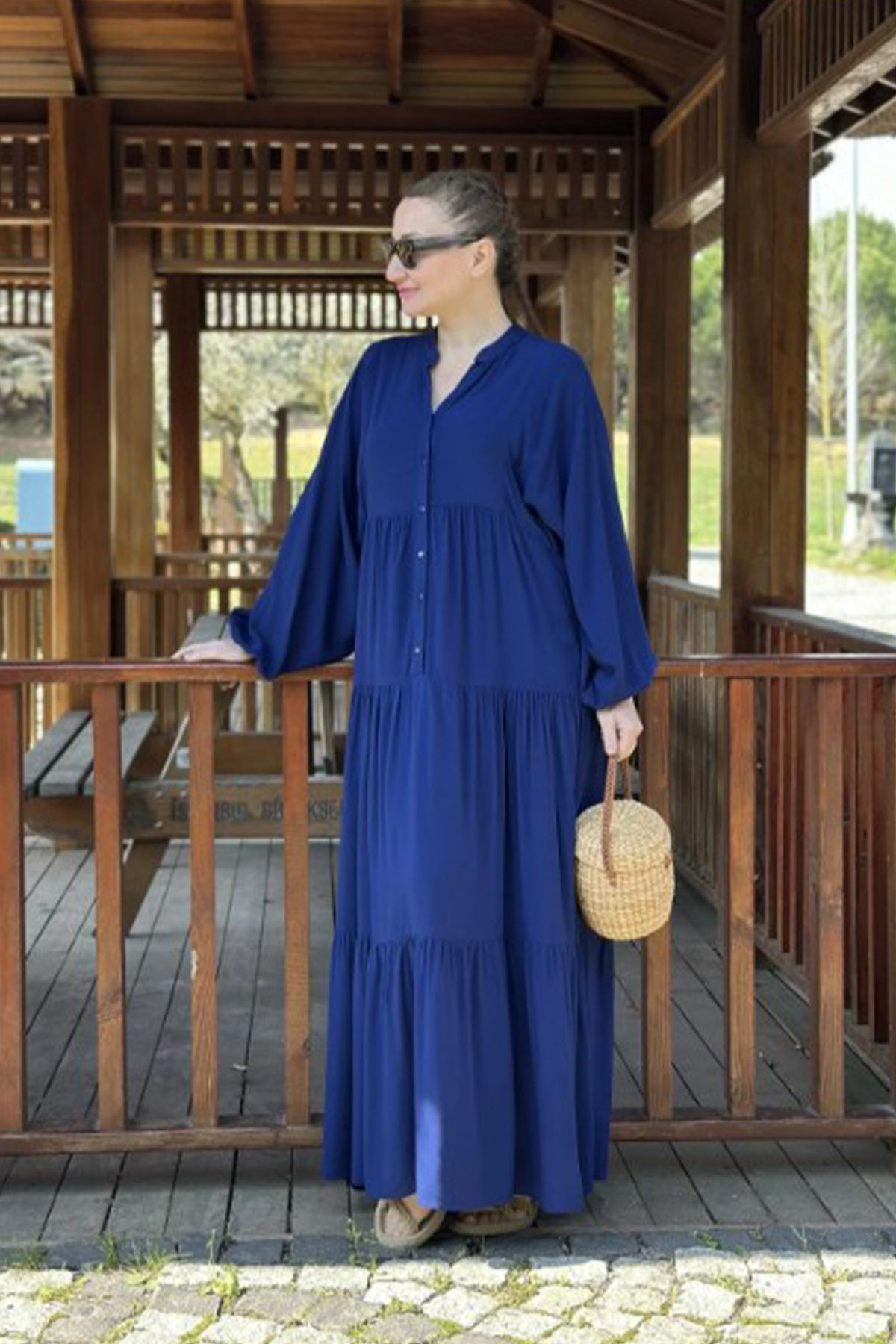 Kadın Lacivert Düğmeli Patlı Yakalı Oversize Salaş Balon Kollu Uzun Elbise Kadın Lacivert Düğmeli Patlı Yakalı Oversize Salaş Balon Kollu Uzun Elbise 00-ALA XL/2XL
