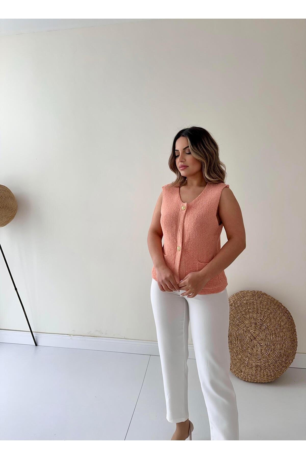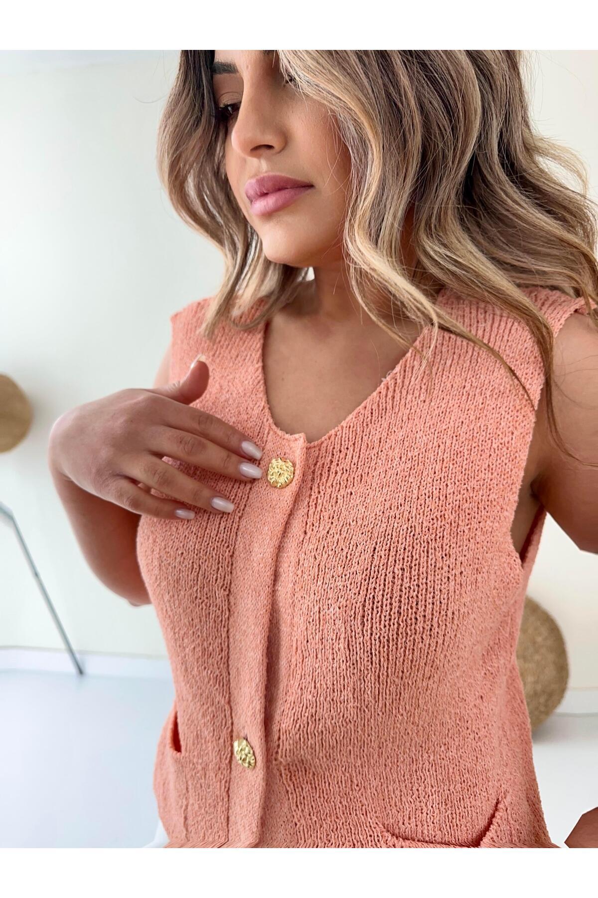 Gold Düğmeli Triko Yelek Somon Gold Düğmeli Triko Yelek Somon STK3130 Standart