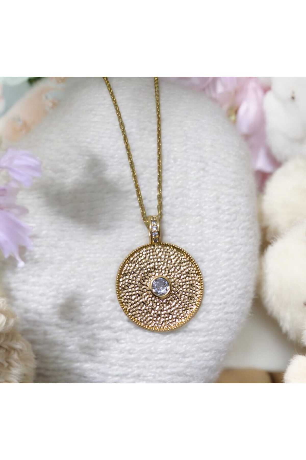 Parlak Simli Kabartmalı Yuvarlak Reçine Kolye Parlak Simli Kabartmalı Yuvarlak Reçine Kolye 136930 45