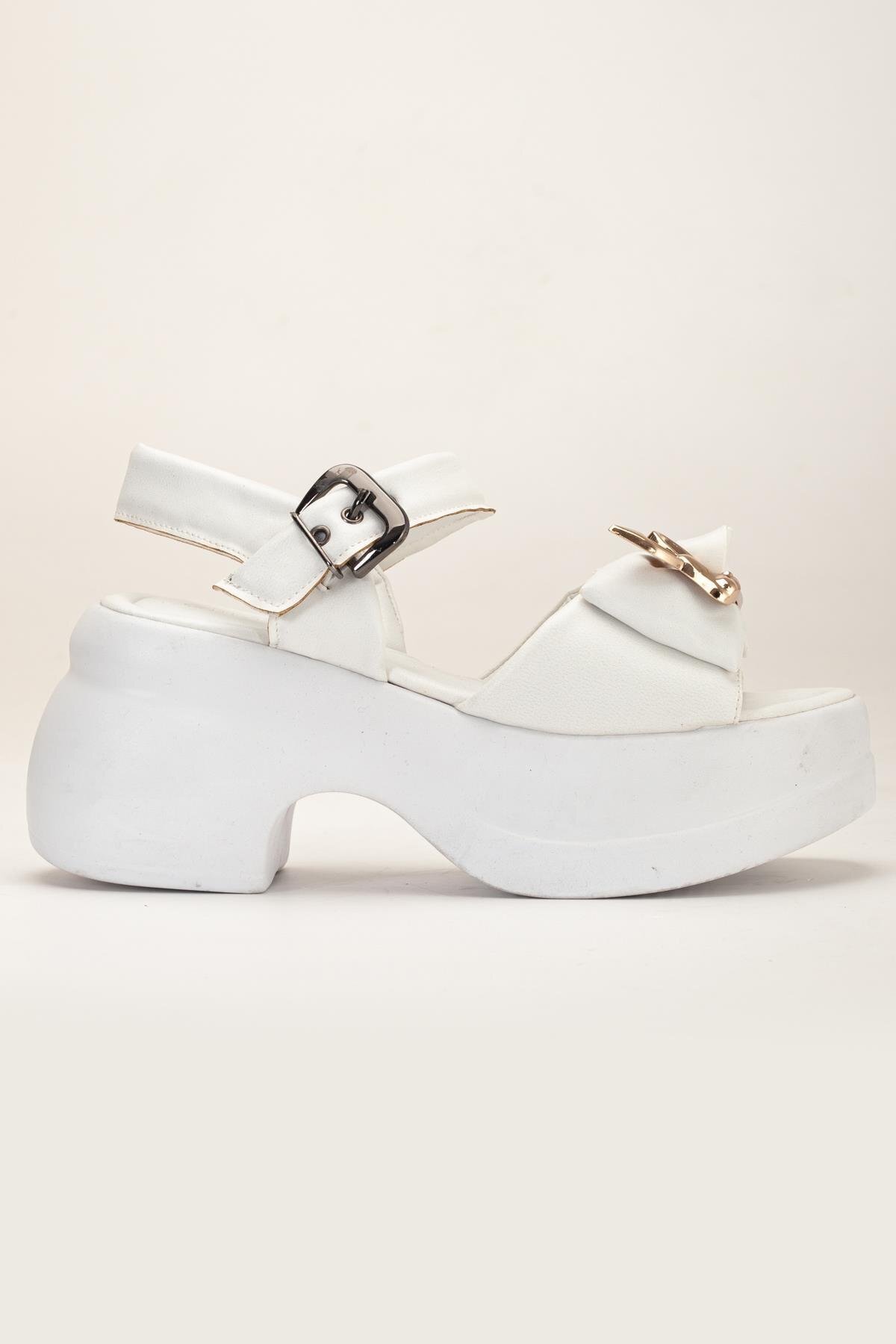 Kadın Dolgu Topuk Sandalet Beyaz Baretli Tavşan Figürlü Tokalı Kadın Dolgu Topuk Sandalet Beyaz Baretli Tavşan Figürlü Tokalı 149-523-CILT 40