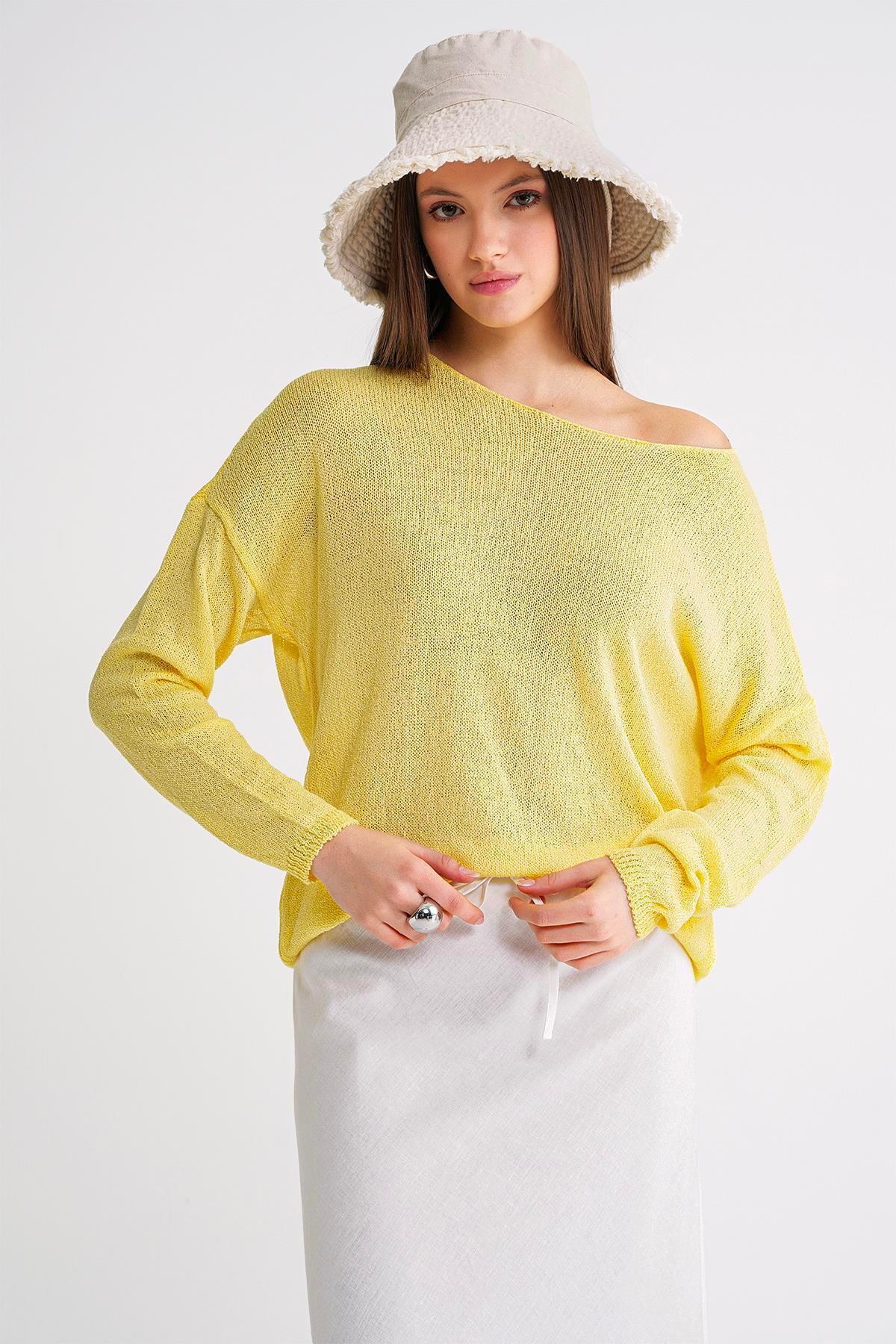 6933 Kadın Kayık Yaka İnce Mevsimlik Triko Kazak Sarı 6933 Kadın Kayık Yaka İnce Mevsimlik Triko Kazak Sarı Y25KZK6933 Standart