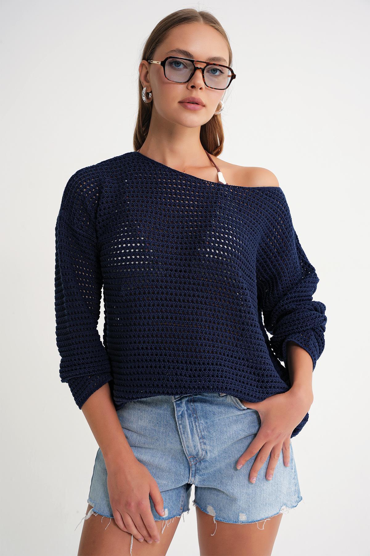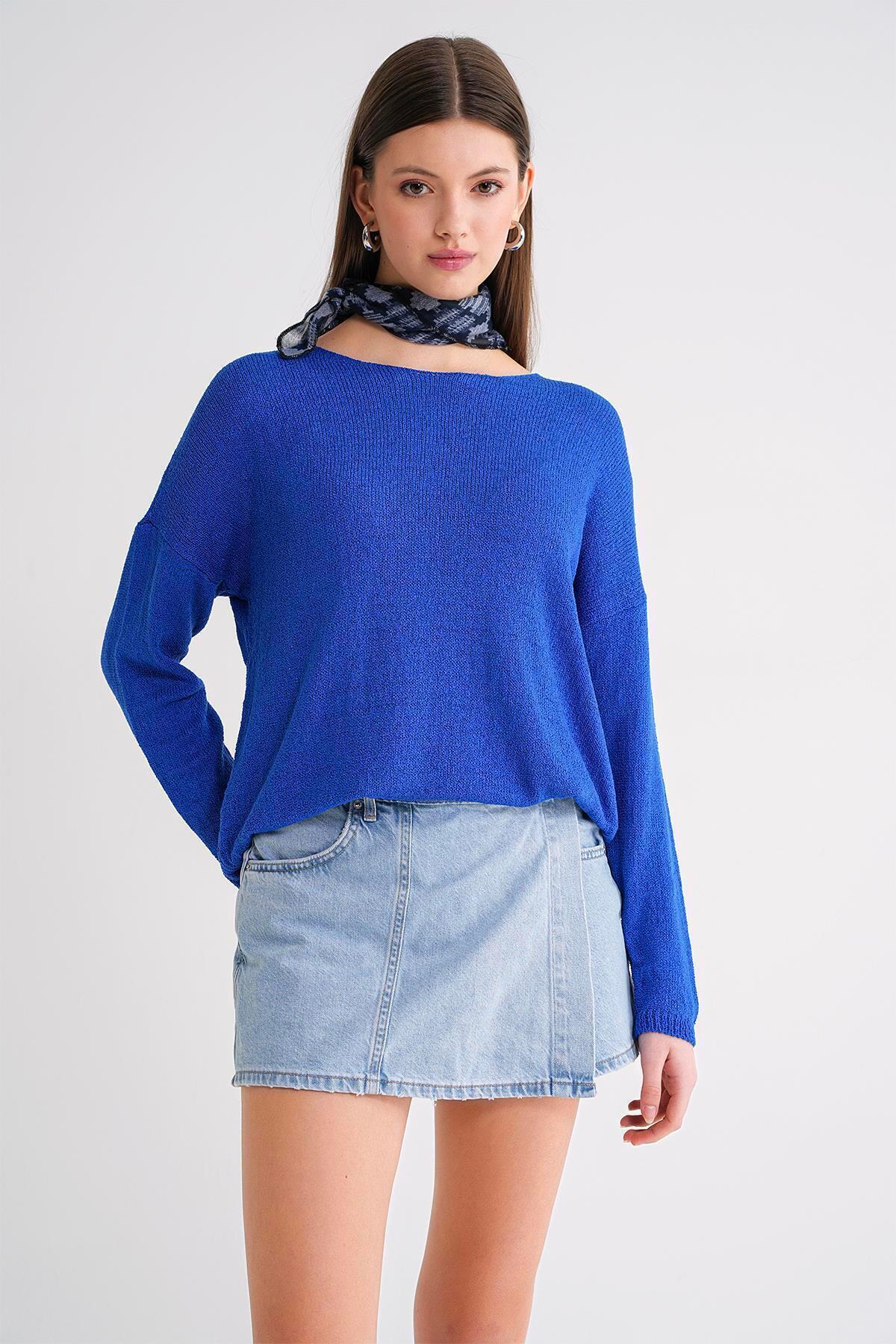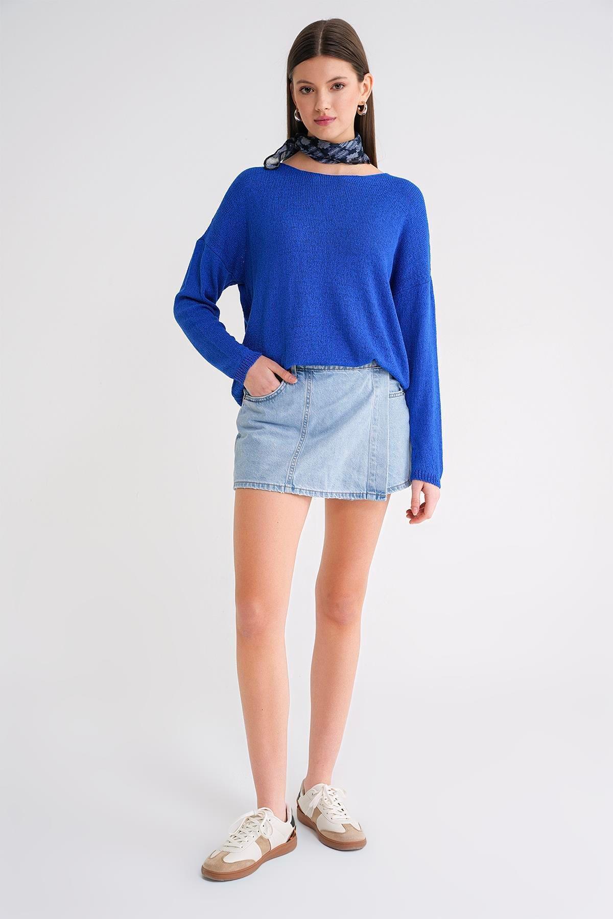 6933 Kadın Kayık Yaka İnce Mevsimlik Triko Kazak Mavi 6933 Kadın Kayık Yaka İnce Mevsimlik Triko Kazak Mavi Y25KZK6933 Standart