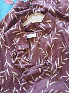 Mor Zeytin Dalı Desenli Örme Önden Düğmeli Kısa Kol Kadın Pijama Mor Zeytin Dalı Desenli Örme Önden Düğmeli Kısa Kol Kadın Pijama 2369 XL