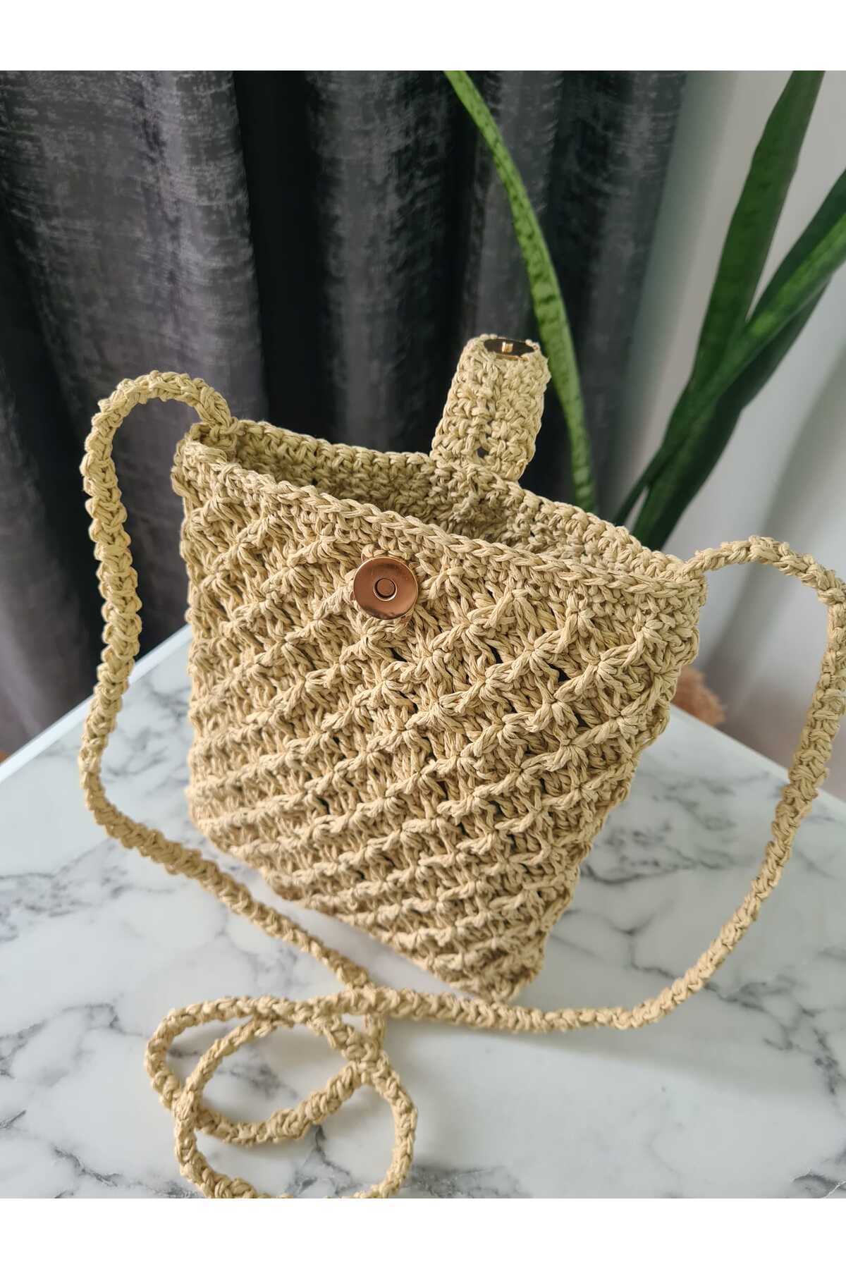 Kadın El Örgüsü Kağıt İp Omuz Telefon Çantası Kadın El Örgüsü Kağıt İp Omuz Telefon Çantası KHÇ001 تک سایز