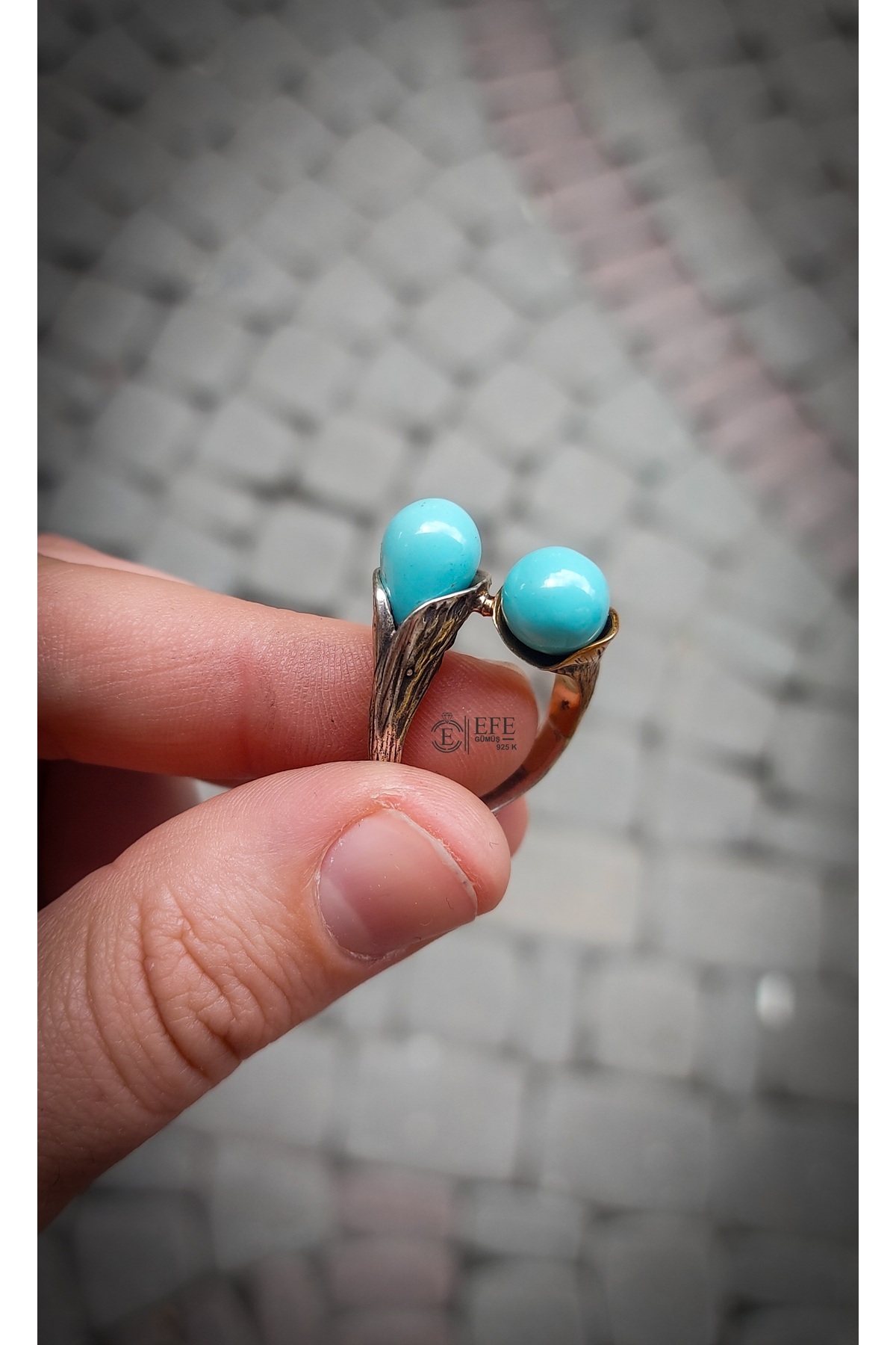 925 AYAR GÜMÜŞ ÖZEL TASARIM İKİLİ FİRUZE (TURKUAZ) TAŞLI YÜZÜK 925 AYAR GÜMÜŞ ÖZEL TASARIM İKİLİ FİRUZE (TURKUAZ) TAŞLI YÜZÜK 2LİFRZYZK 20