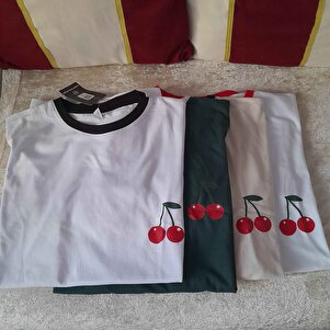Kiraz Baskılı T-Shirt - Yeşil Gövde Beyaz Biyeli Oversize Bisiklet Yaka Kısa Kol Tişört Kiraz Baskılı T-Shirt - Yeşil Gövde Beyaz Biyeli Oversize Bisiklet Yaka Kısa Kol Tişört KİRBST-CLYS XL