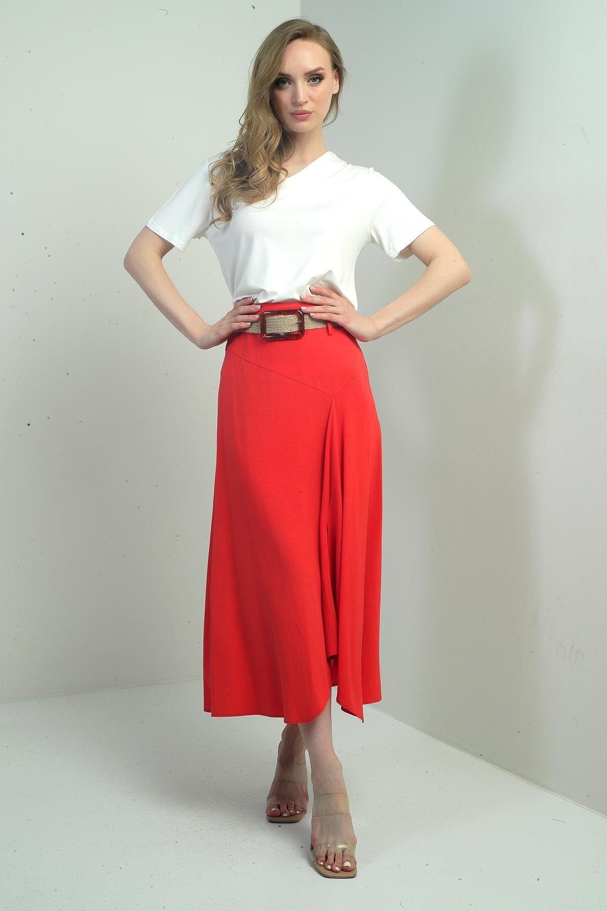 Kadın Beli Kemerli Arkası Fermuarlı Önü Yırtmaçlı Uzun Salaş Etek Kadın Beli Kemerli Arkası Fermuarlı Önü Yırtmaçlı Uzun Salaş Etek S-25Y0840032 XL