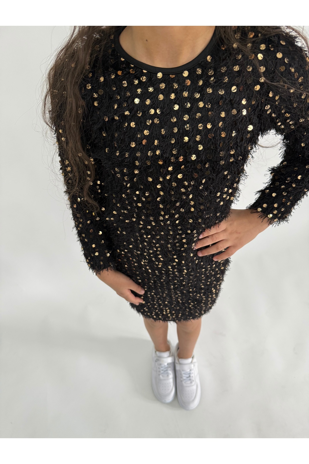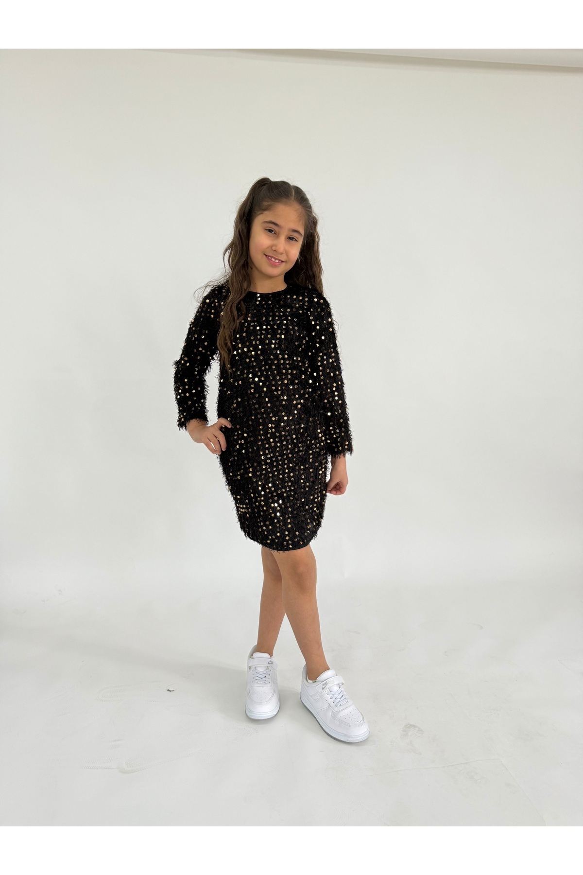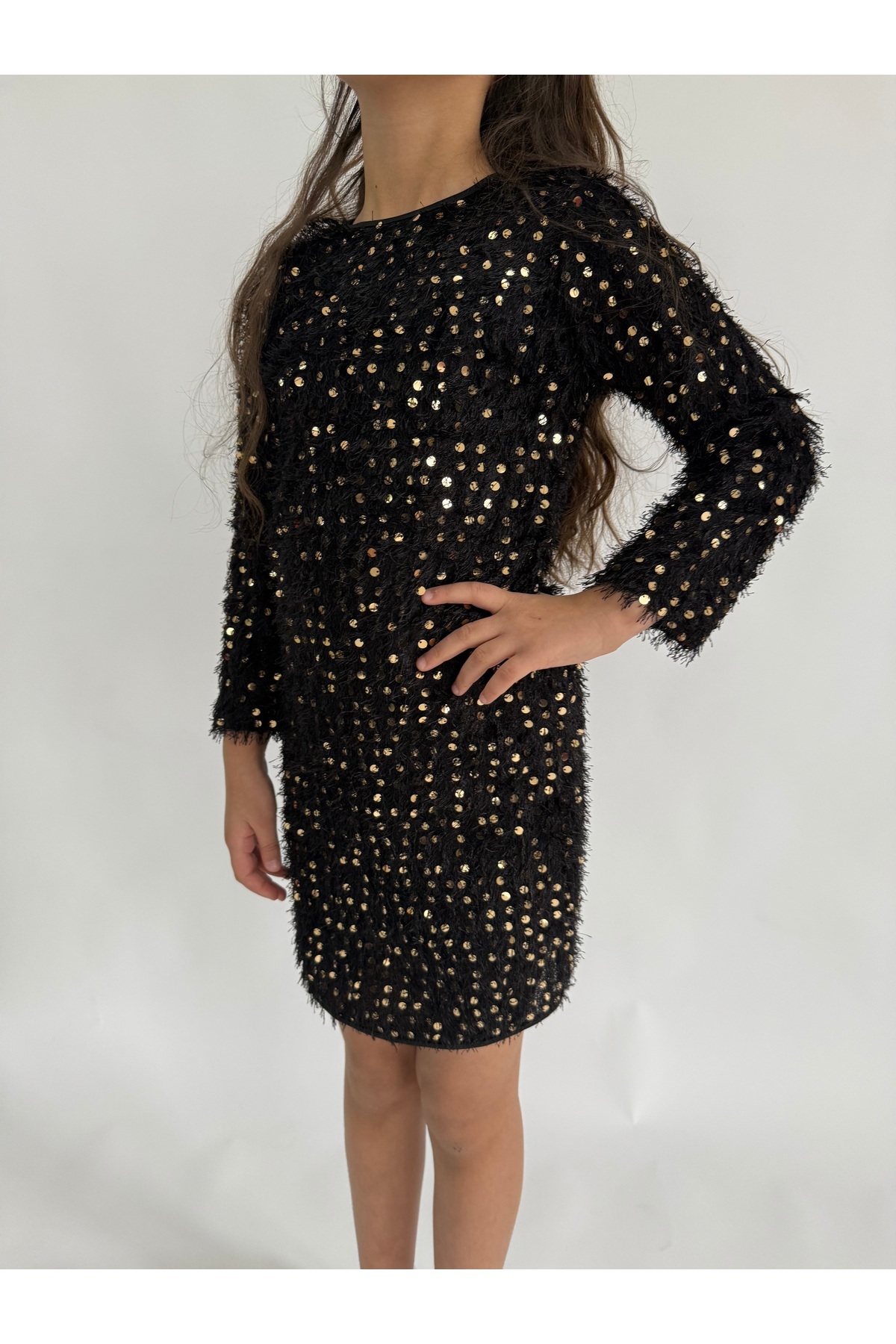 KIZ ÇOCUK GOLD PUL PAYET ELBİSE KIZ ÇOCUK GOLD PUL PAYET ELBİSE ELB7199 12