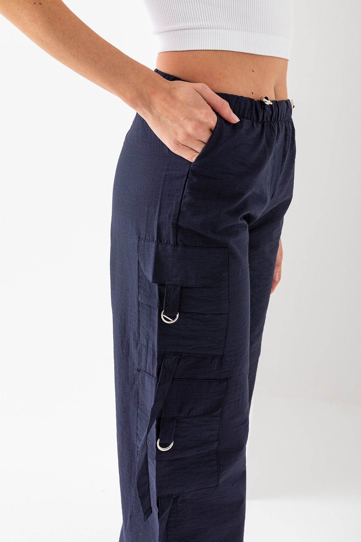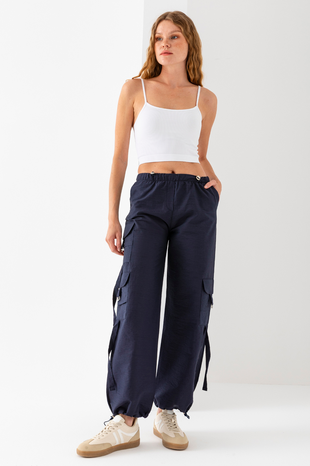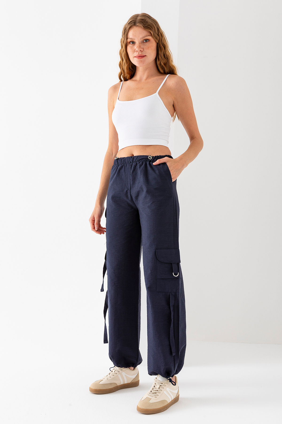 Kadın Beli ve Paçası Stoperli Kargo Cep Paraşüt Pantolon Lacivert - 25664 Kadın Beli ve Paçası Stoperli Kargo Cep Paraşüt Pantolon Lacivert - 25664 910-25664 XL