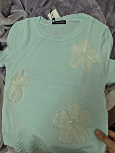 Aplikeli Kısa Kol Triko Kazak Aplikeli Kısa Kol Triko Kazak 12128 Pullover Standart