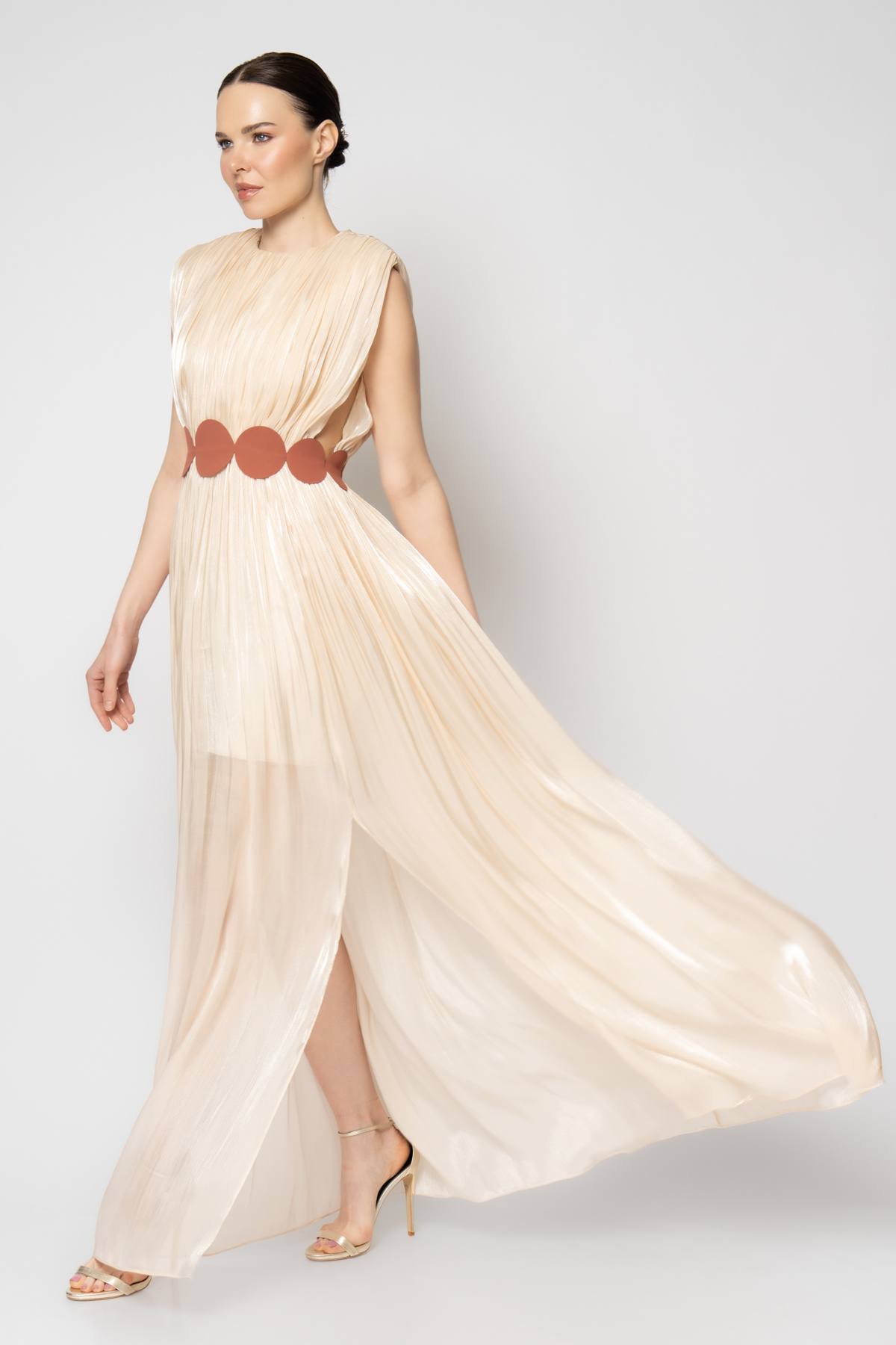 Beli daire kemerli şifon abiye elbise Beli daire kemerli şifon abiye elbise 6344 44