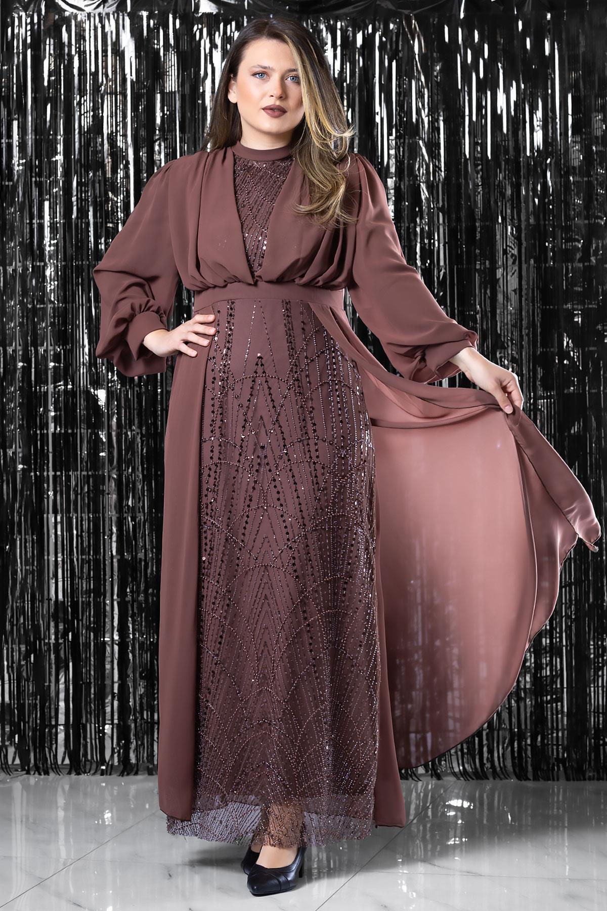 İşleme Detaylı Şifon Abiye Elbise Gül Kurusu FHM954 İşleme Detaylı Şifon Abiye Elbise Gül Kurusu FHM954 50