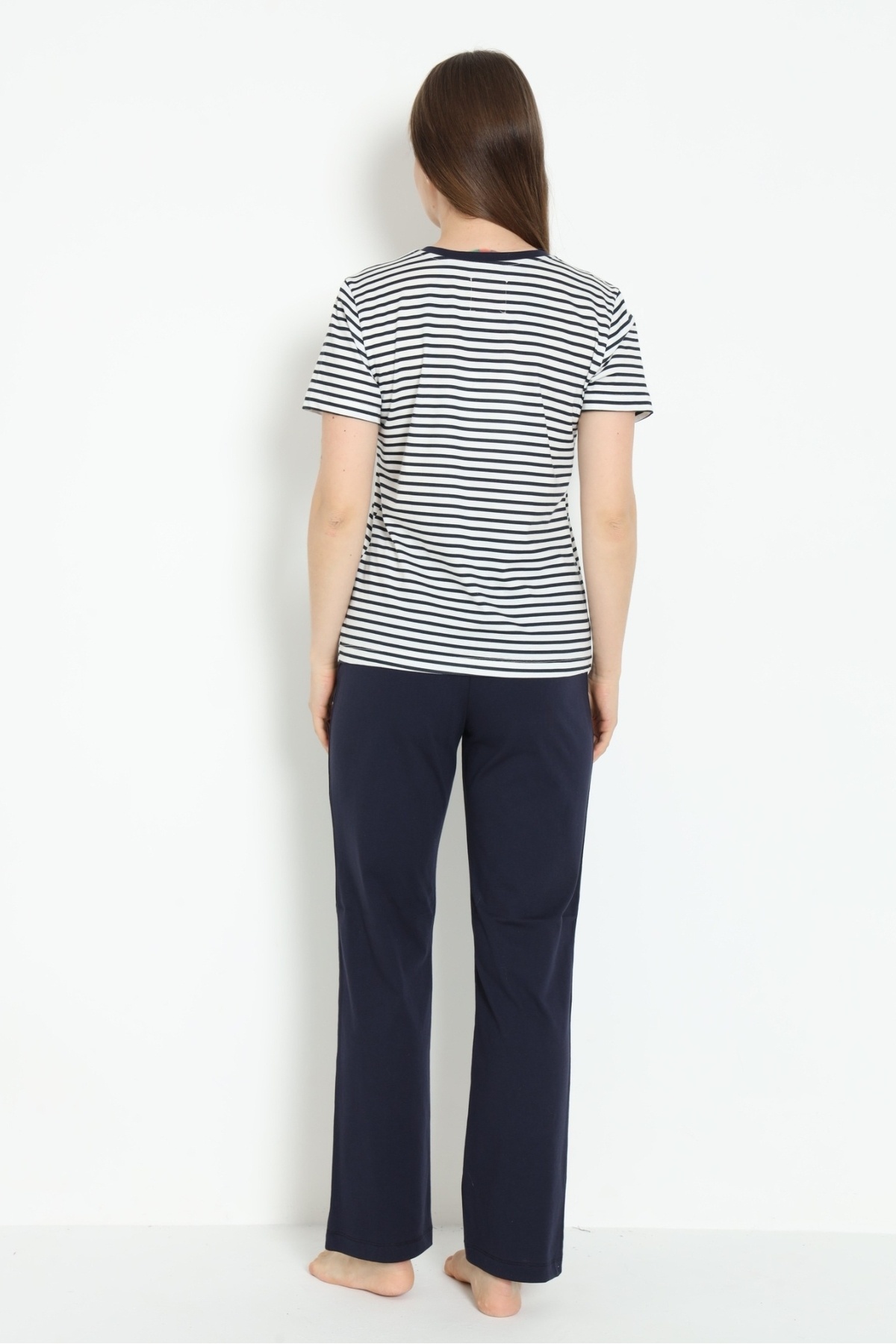 Çizgili Kalp Detaylı Kadın Couple Pijama Takımı Çizgili Kalp Detaylı Kadın Couple Pijama Takımı 8737 XL