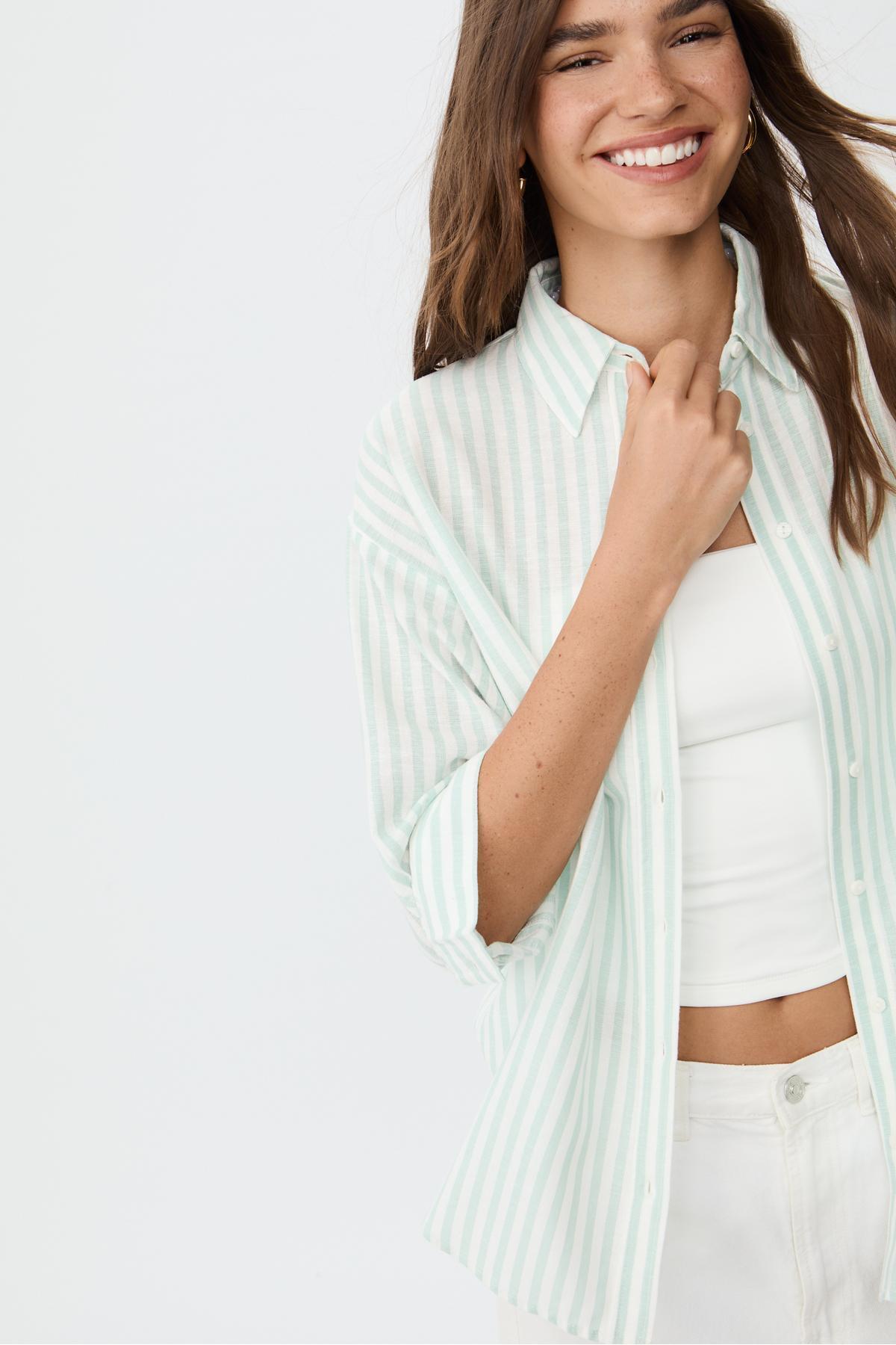 Keten karışımlı gömlek Keten karışımlı gömlek 02027721 XL