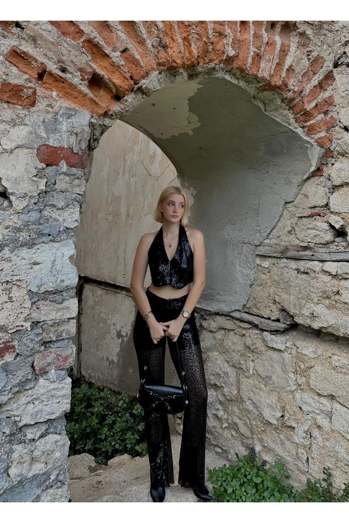 Luna Bordo Renkli El Yapımı Payetli İki Parça Etek ve Bağlamalı Crop Top Takım Luna Bordo Renkli El Yapımı Payetli İki Parça Etek ve Bağlamalı Crop Top Takım lunab L