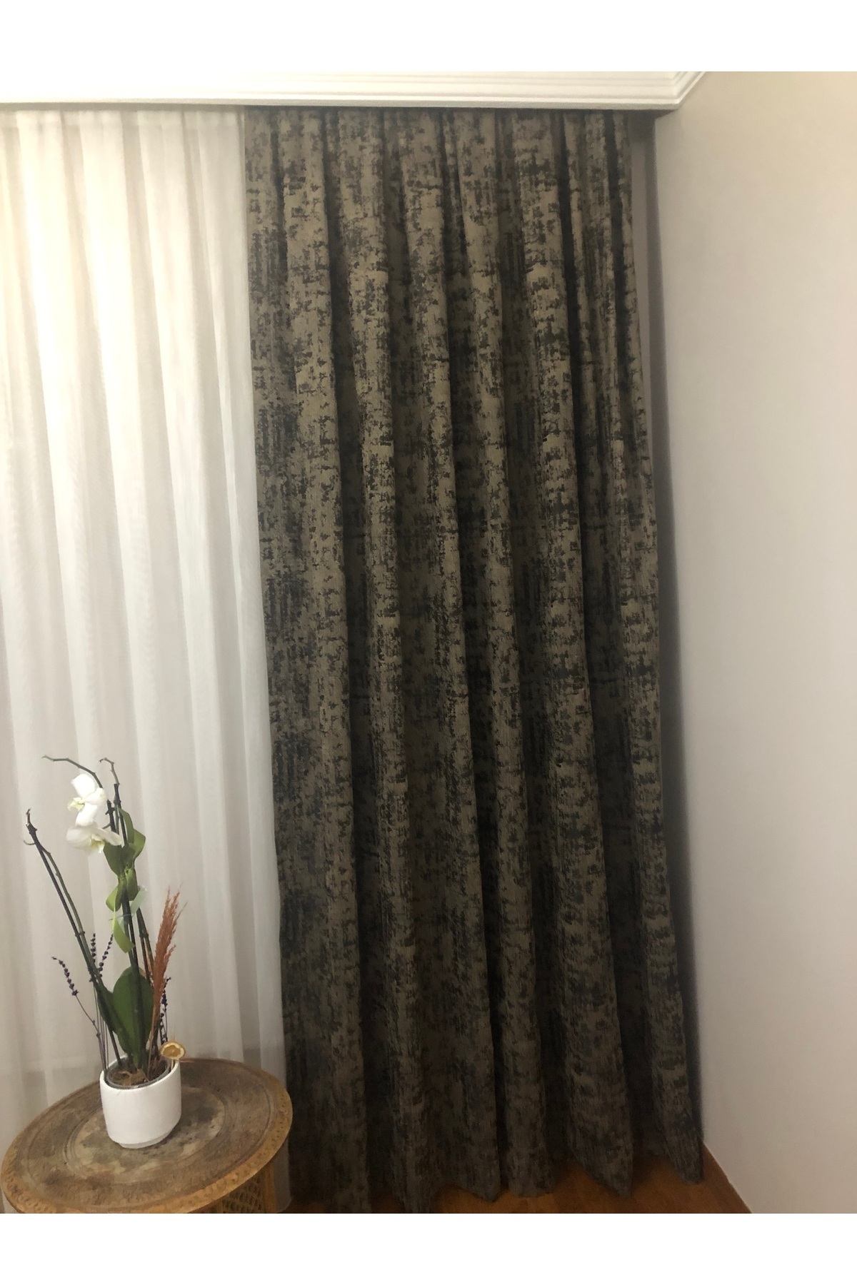 SÜTLÜ KAHVE SİYAH SERPME DESENLİ ŞÖNİL KUMAŞLI FON PERDE SÜTLÜ KAHVE SİYAH SERPME DESENLİ ŞÖNİL KUMAŞLI FON PERDE FP251031 100 x 265