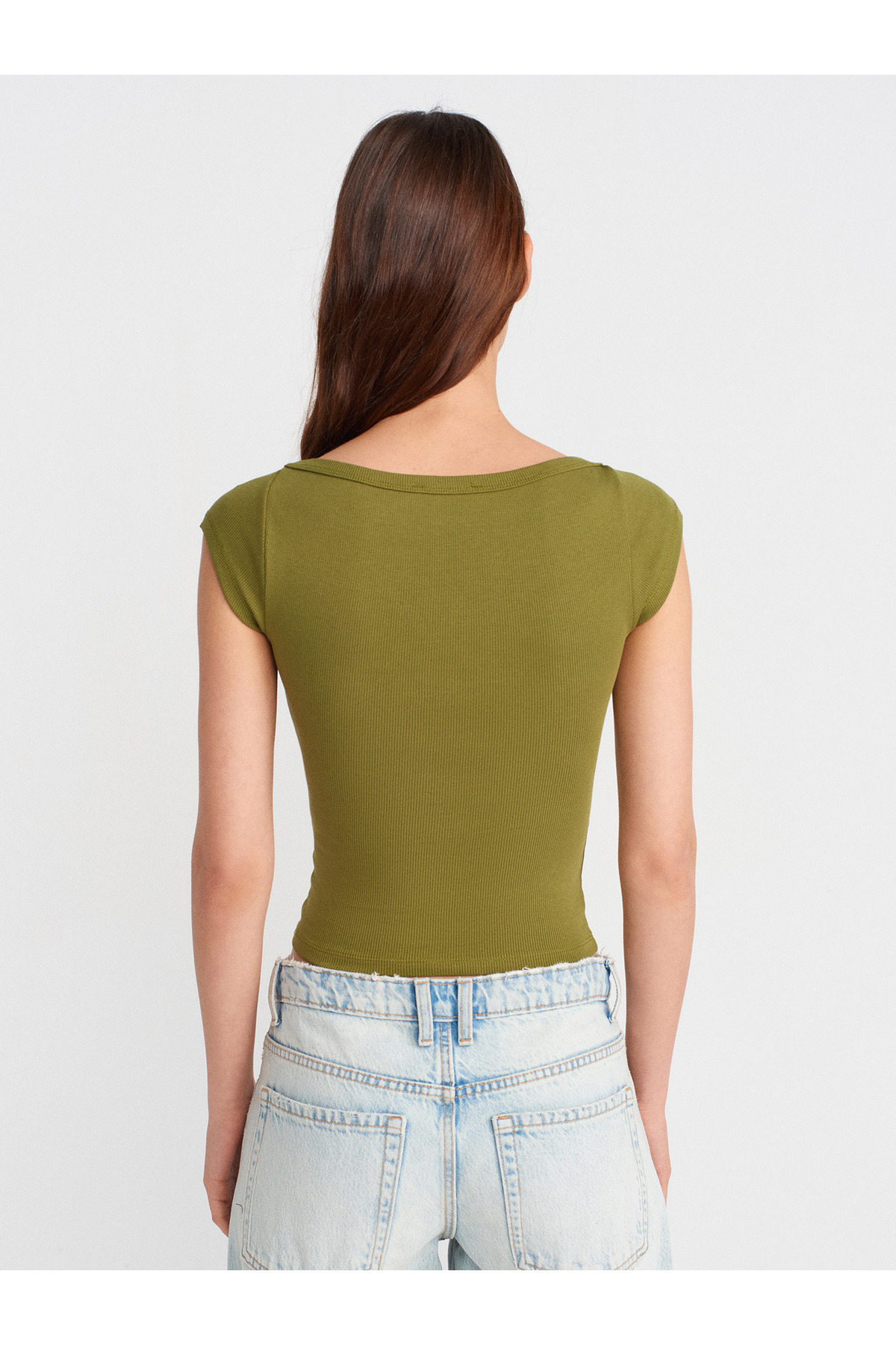 31809 Kayık Yaka Fitilli T-shirt-Yağ Yeşil 31809 Kayık Yaka Fitilli T-shirt-Yağ Yeşil 101A31809 40