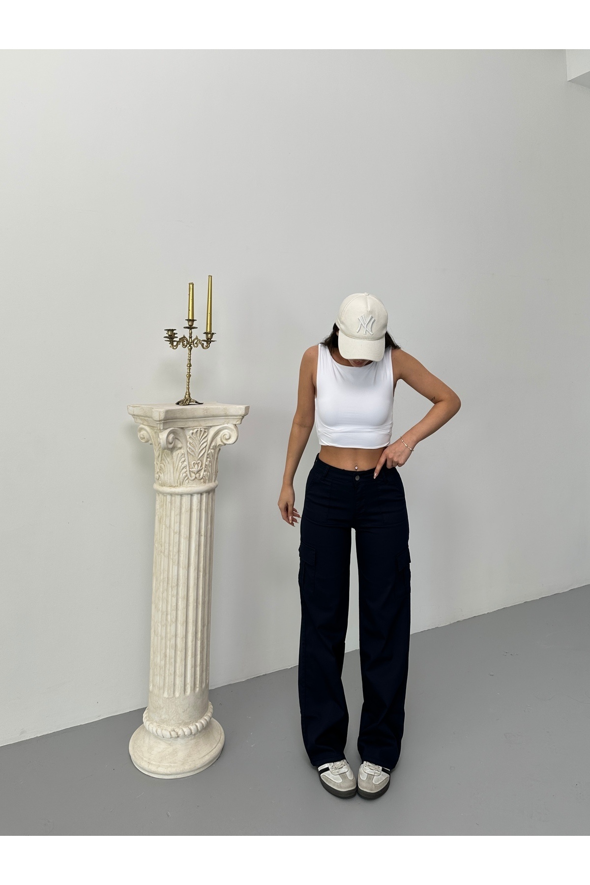 Kargo Cepli Likralı Yüksek Bel Wide Leg Pantolon Kargo Cepli Likralı Yüksek Bel Wide Leg Pantolon 1905 2XL