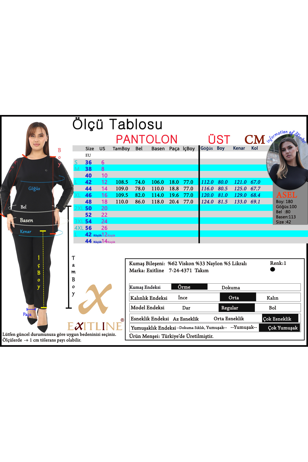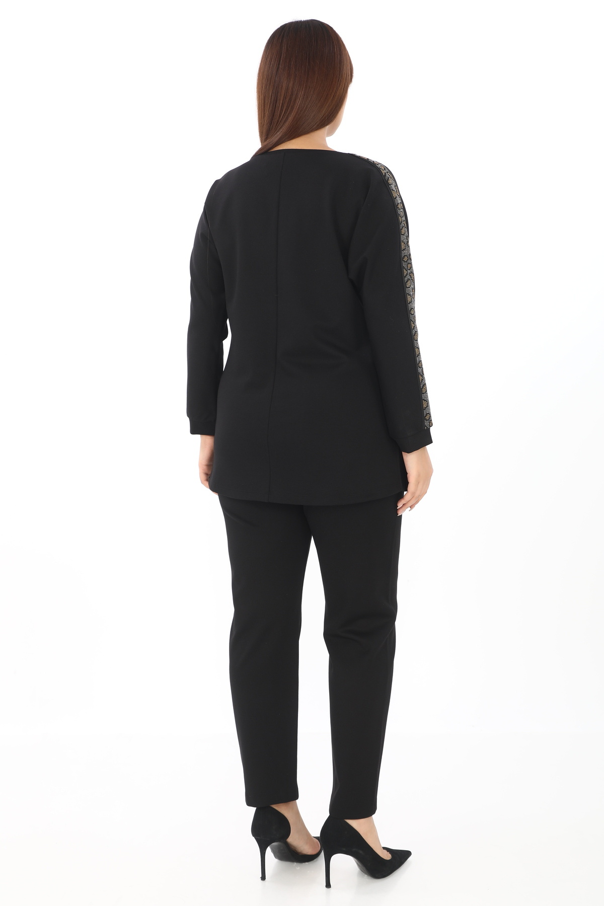 Kadın Kol Yanları Yılan Desen Taşlı Siyah Pantolon Bluz Takım Kadın Kol Yanları Yılan Desen Taşlı Siyah Pantolon Bluz Takım 7-24-4371 42