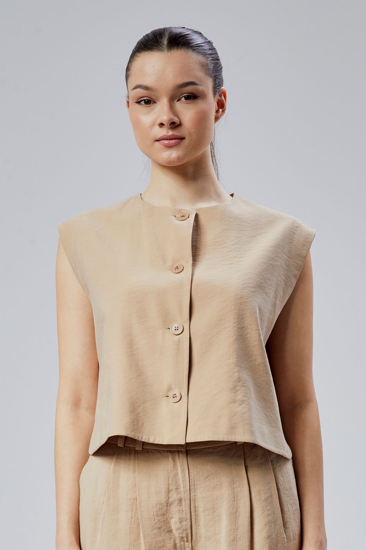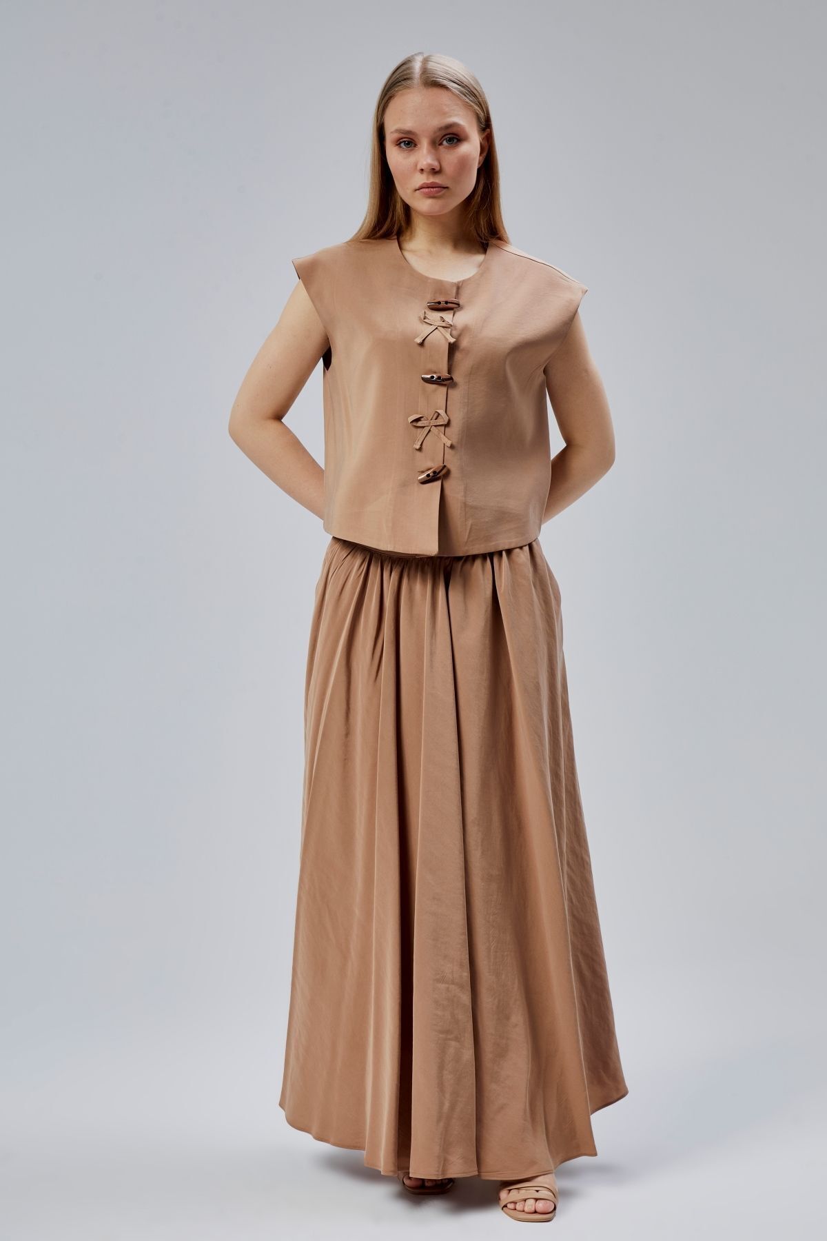 Kahverengi Regular Düğme Detaylı Yelek Kahverengi Regular Düğme Detaylı Yelek 46315 XL