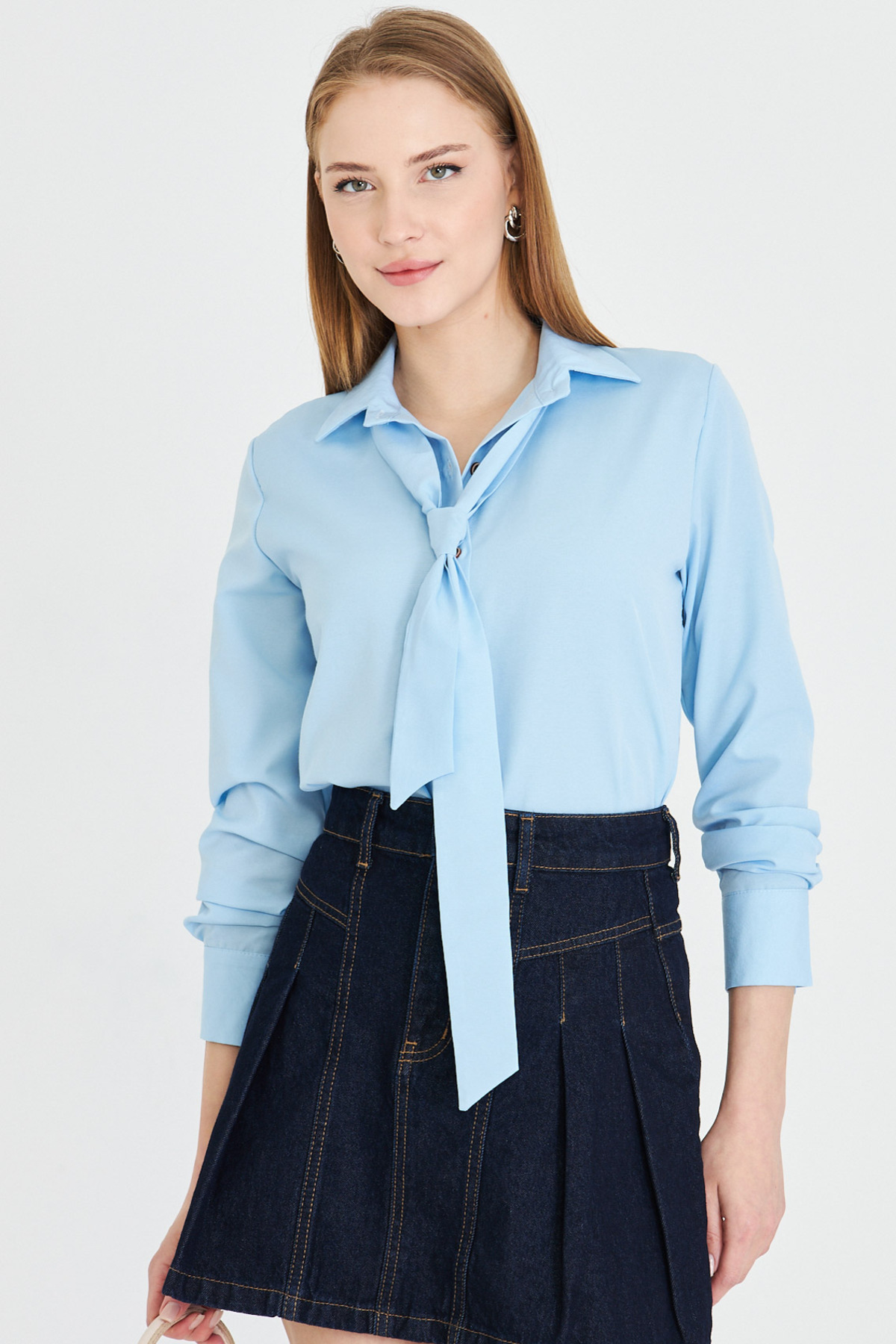 Kadın Bebe Mavi Kravat Detaylı Gömlek ARM-25Y001030 Kadın Bebe Mavi Kravat Detaylı Gömlek ARM-25Y001030 XL