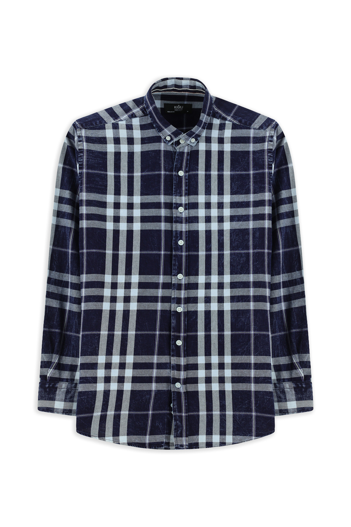 Uzun Kol Regular Fit Ekose Spor Düğmeli Yaka Pamuk Gömlek Uzun Kol Regular Fit Ekose Spor Düğmeli Yaka Pamuk Gömlek KK2543C0EK008 2XL