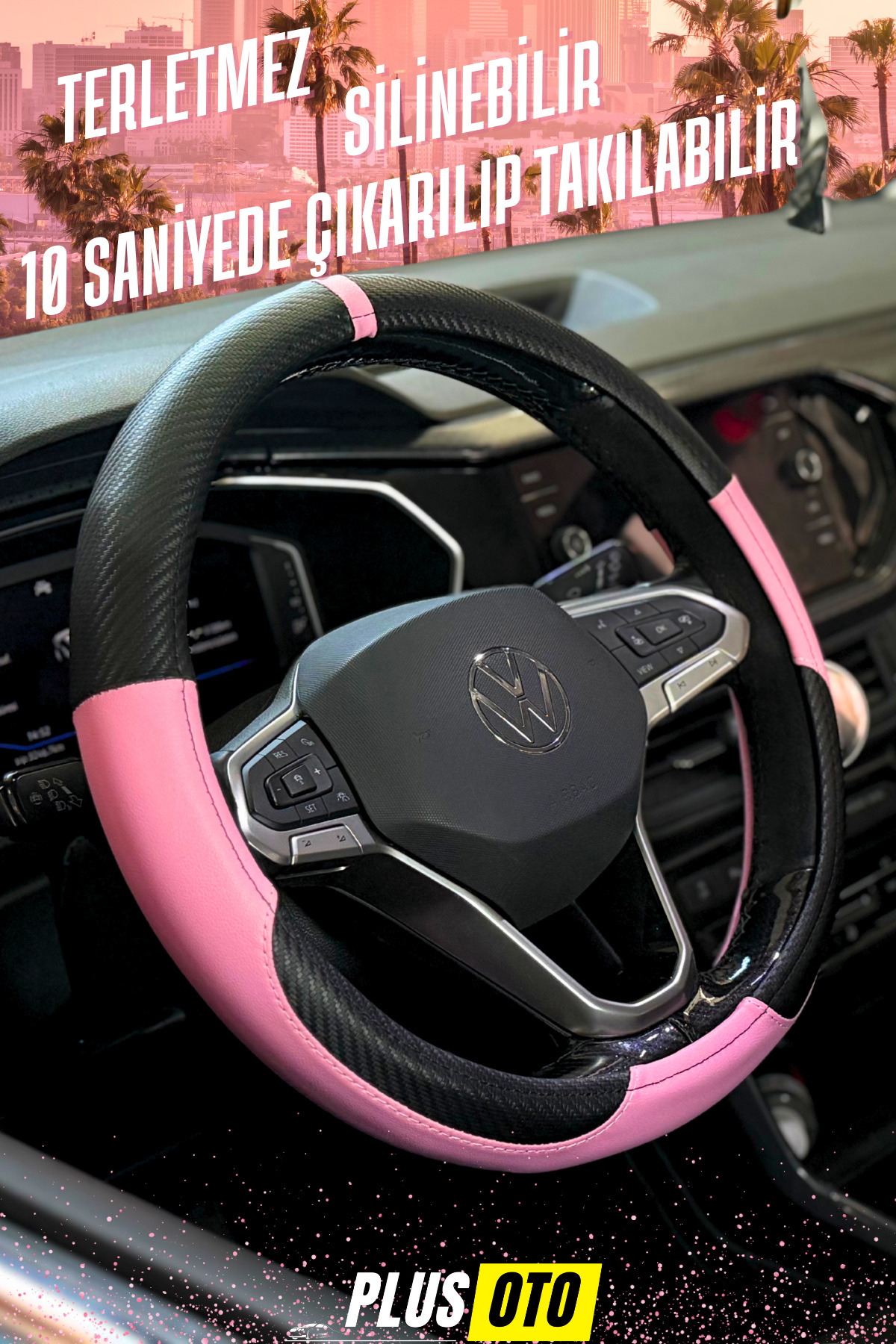 Kadınlara Özel Geçmeli Pembe Direksiyon Kılıfı Karbon ve Deri Direksiyon Kılıfı Kadınlara Özel Geçmeli Pembe Direksiyon Kılıfı Karbon ve Deri Direksiyon Kılıfı P-002 تک سایز