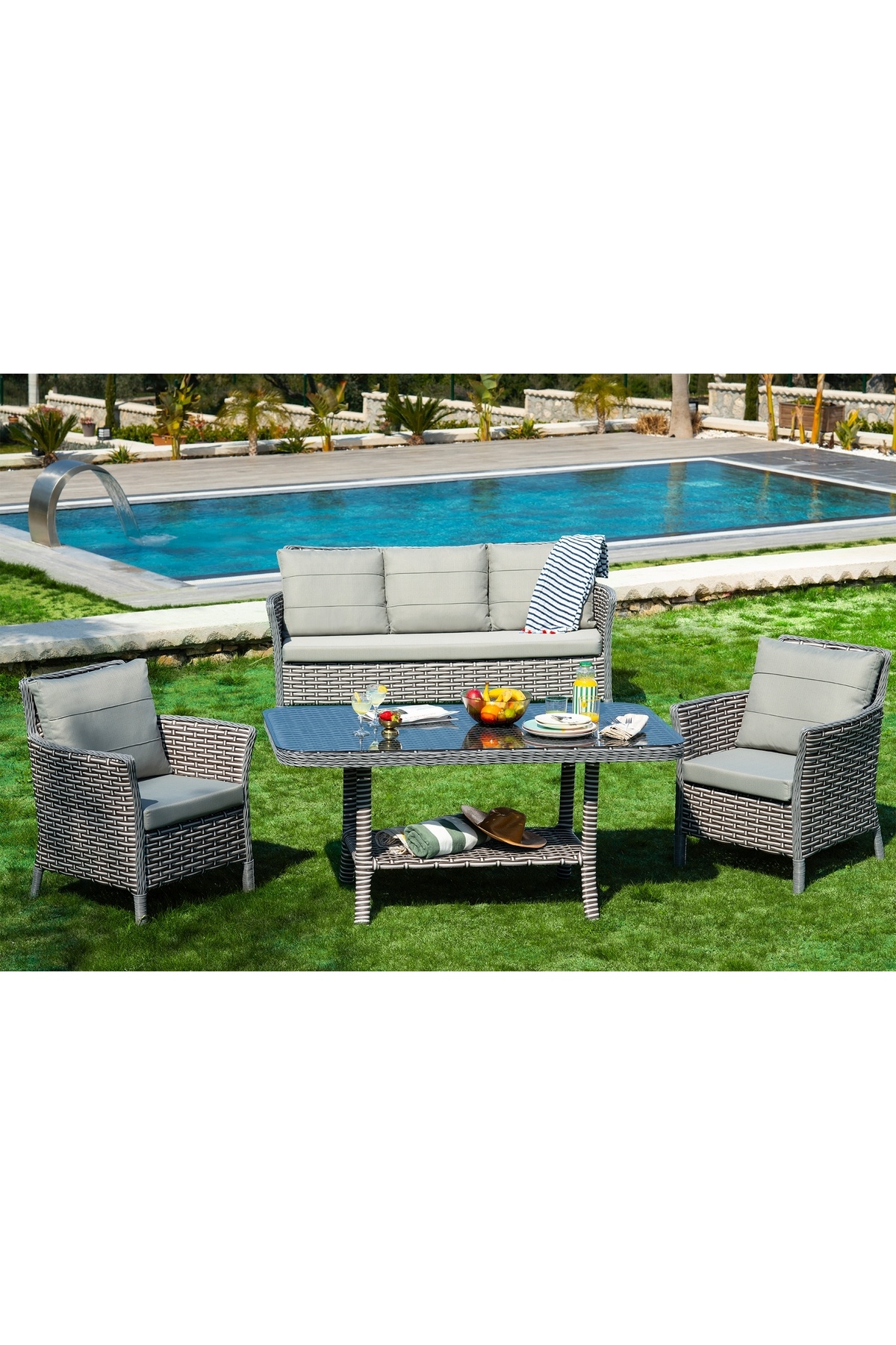 Letra Rattan Bahçe Mobilyası, Gri, 3+1+1 Letra Rattan Bahçe Mobilyası, Gri, 3+1+1 VK5-130 تک سایز