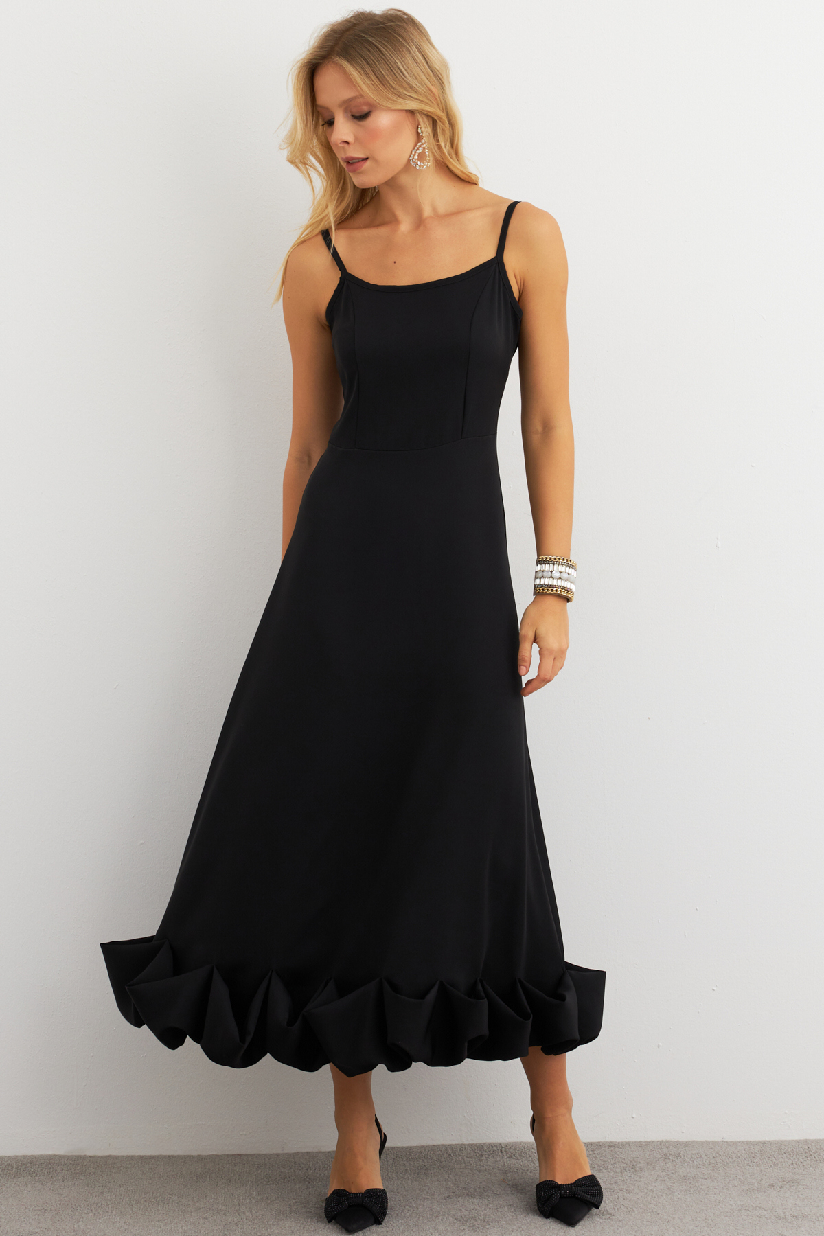 Kadın Siyah Degaje Asimetrik Midi Elbise İRE1436 Kadın Siyah Degaje Asimetrik Midi Elbise İRE1436 L