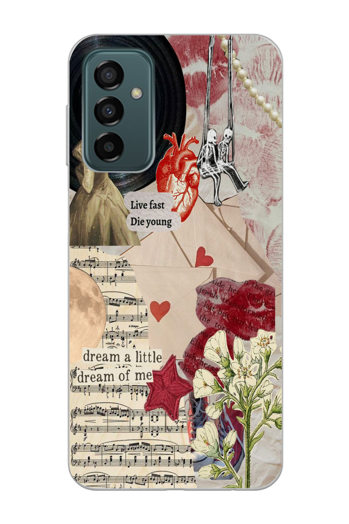 Samsung Galaxy M13 / M23 Uyumlu Kolaj Tasarımlı Baskılı Şeffaf Telefon Kılıfı Samsung Galaxy M13 / M23 Uyumlu Kolaj Tasarımlı Baskılı Şeffaf Telefon Kılıfı mooncsm13009 تک سایز