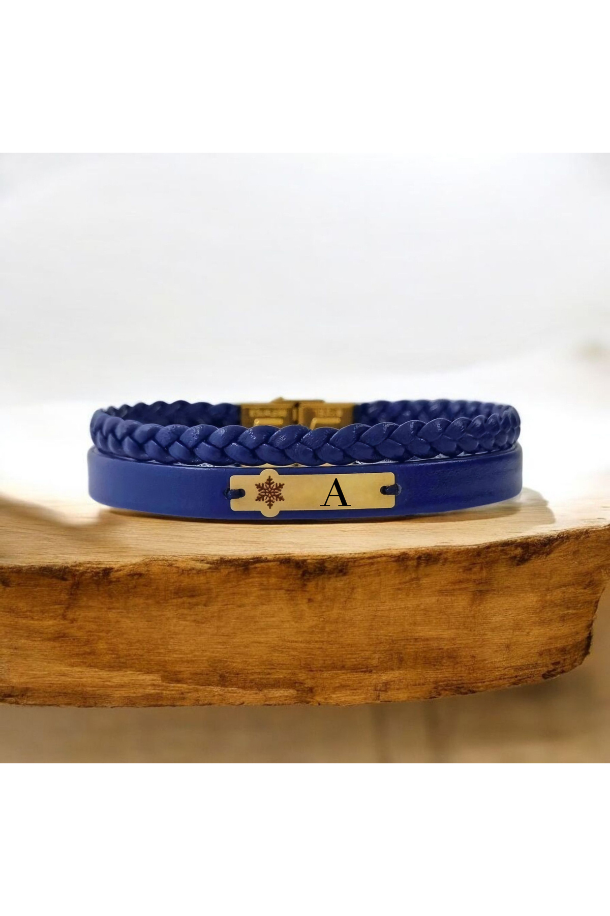 Altın Plakalı 14 Ayar Erkeklere Kar Taneli ve Dikdörtgenli Derili A Harfi Bilekliği-435harf-lacivert Altın Plakalı 14 Ayar Erkeklere Kar Taneli ve Dikdörtgenli Derili A Harfi Bilekliği-435harf-lacivert 435-mavkarderi-mmg-MO2 22 cm