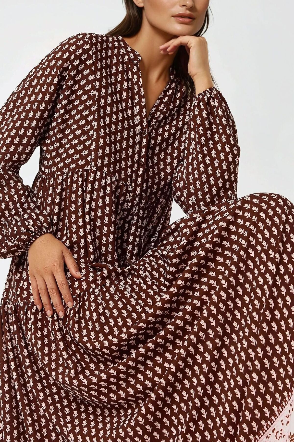 Desenli V Yaka Modest Elbise Desenli V Yaka Modest Elbise M85VBTD1 XL