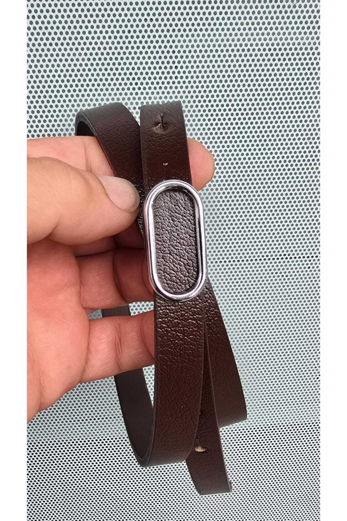 %100 Hakiki Deri Gümüş Tokalı İnce Acı Kahverengi Kemer %100 Hakiki Deri Gümüş Tokalı İnce Acı Kahverengi Kemer KMRX2025-UHD34 2XL